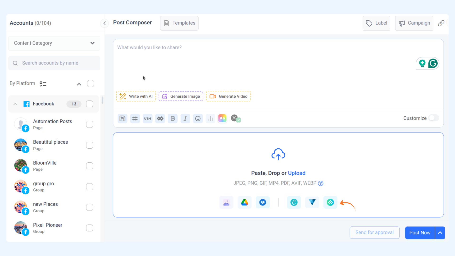 PostNitro integration in ContentStudio composer