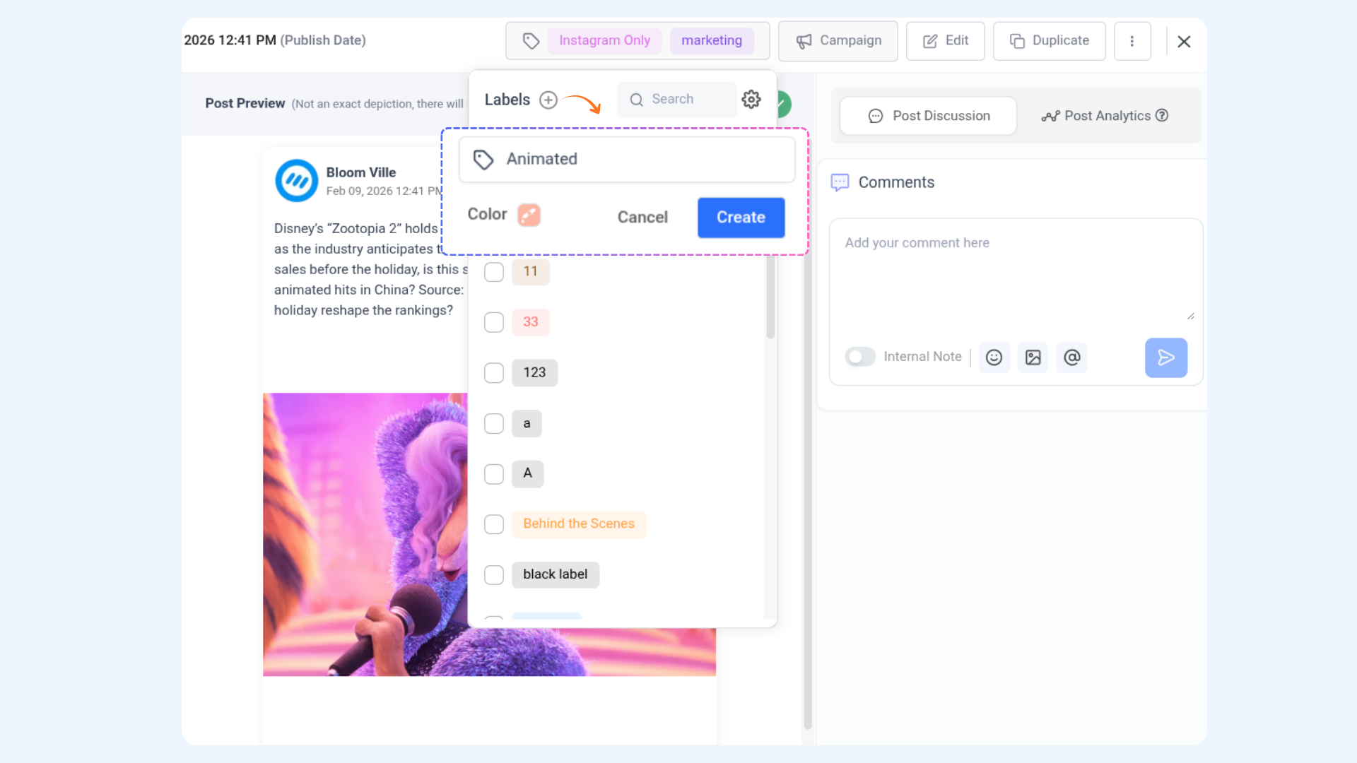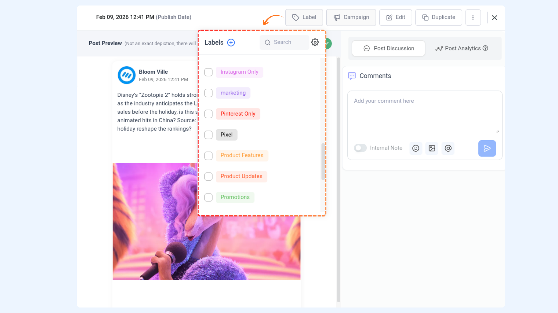 The Label feature, previously available in the Composer, is now also available in the Planner. You can easily add labels to your existing posts directly from the post preview, making organizing and filtering your content across all views simpler.