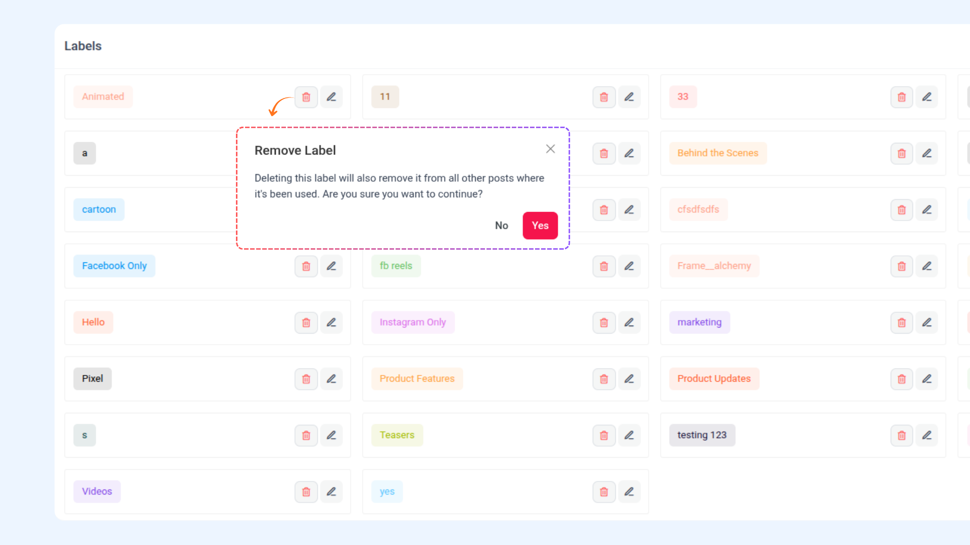 A: Once you add labels to your posts, they’ll be visible across all views in the Planner, ensuring you can filter and organize your content effortlessly