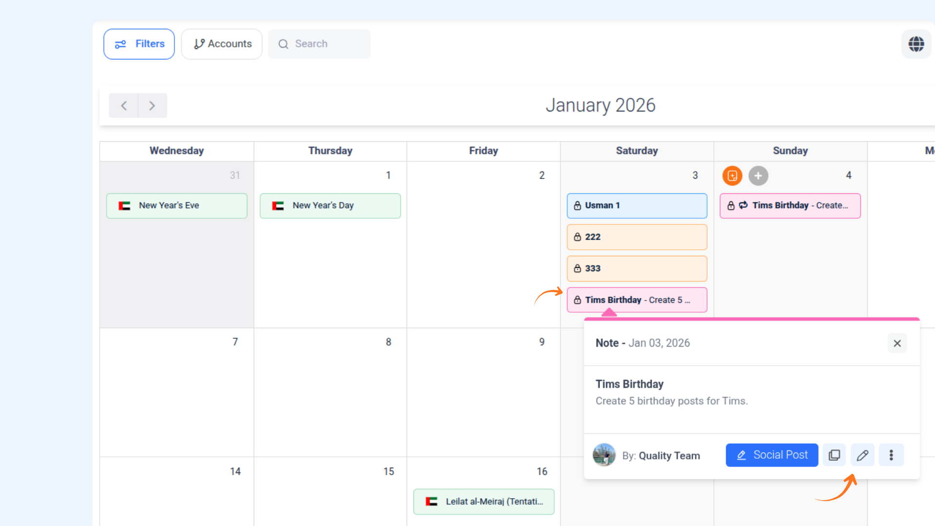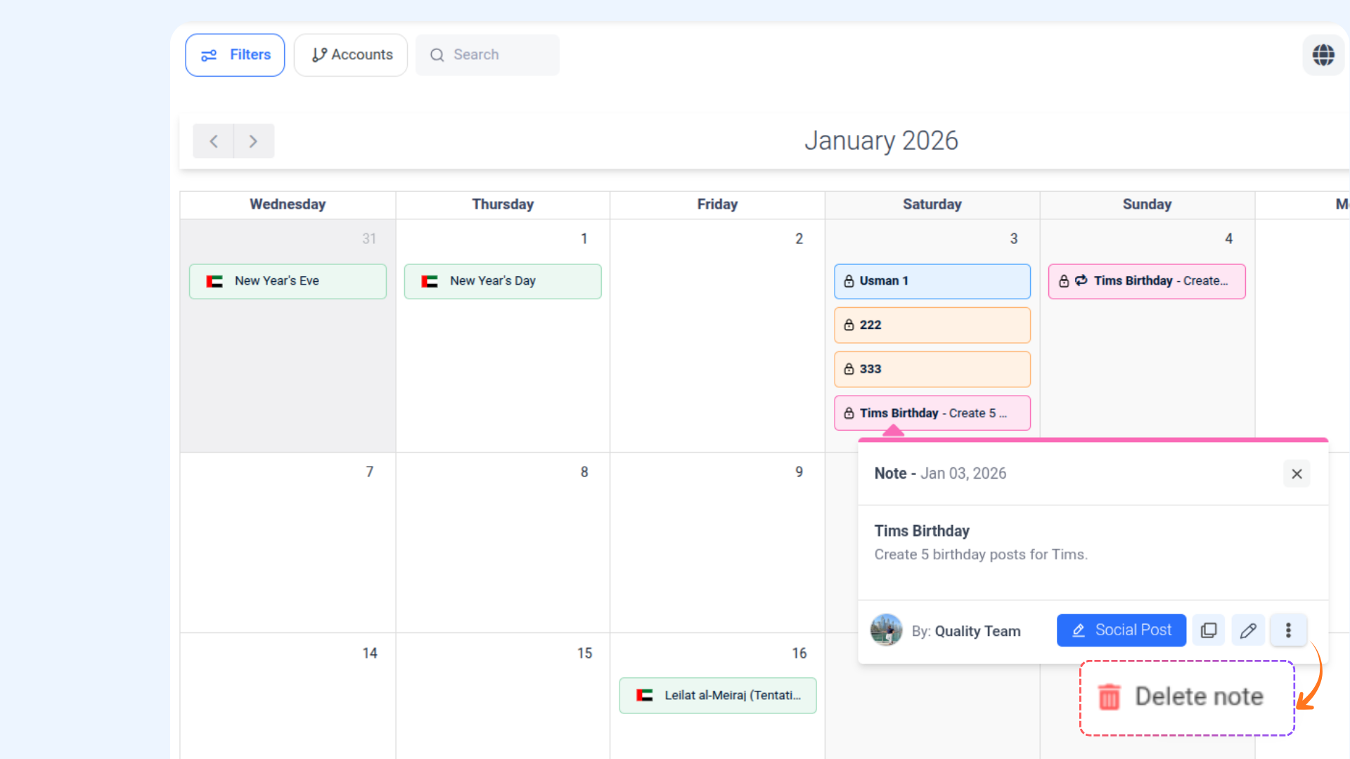 Effortlessly manage your plans and reminders with the Notes Creation feature in the Calendar View of ContentStudio's Planner module. Whether it’s a quick idea, a task to remember, or a detailed schedule, this feature allows you to add, edit, and organize your notes directly in the calendar. With customizable options like date ranges, colors, and descriptions, you can keep your workflow structured and visually appealing.