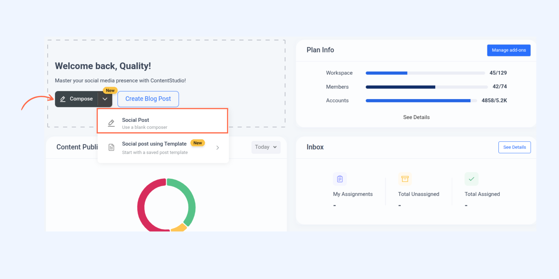 - Open the ContentStudio app and navigate to Compose -> Social Post.