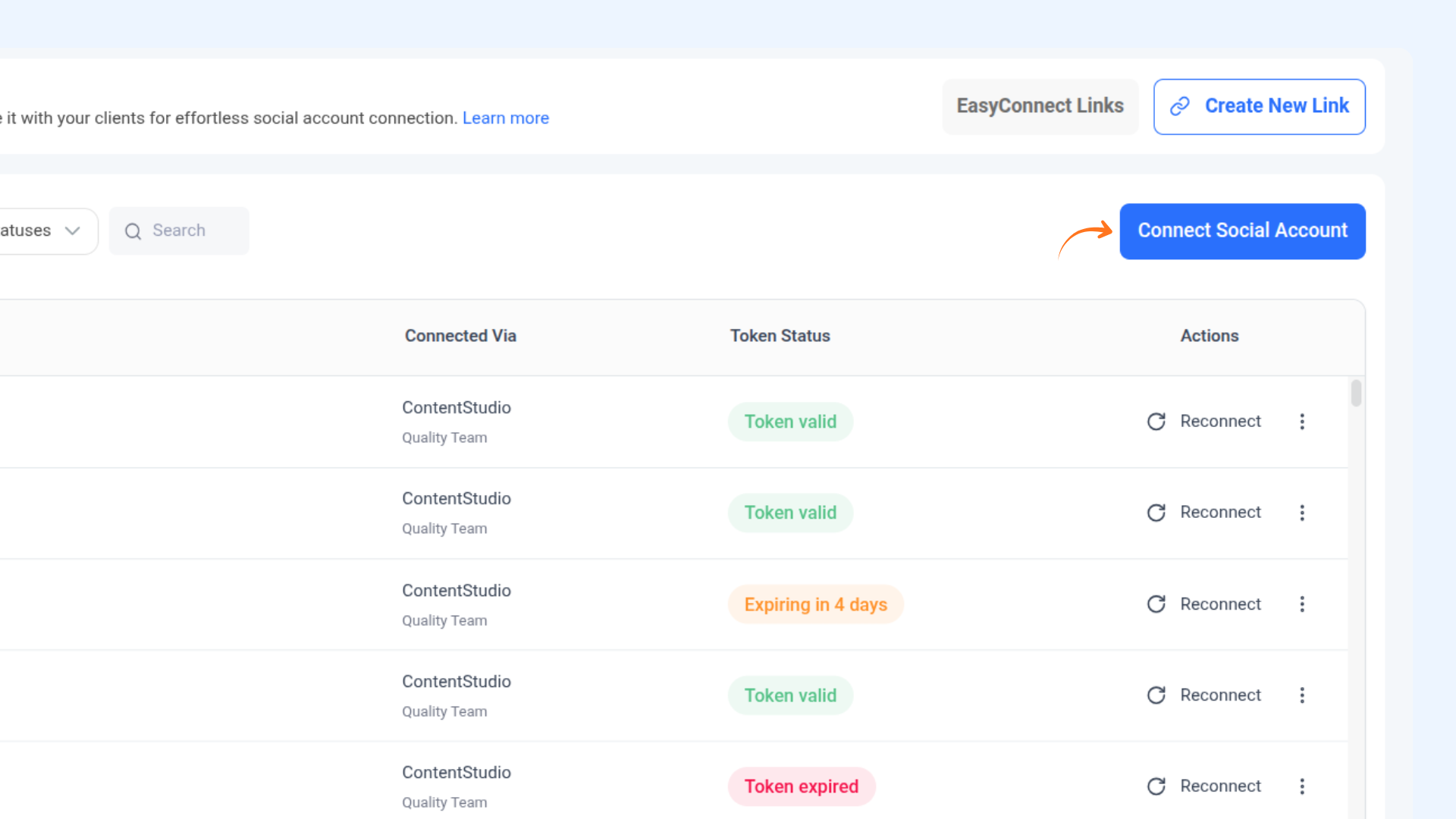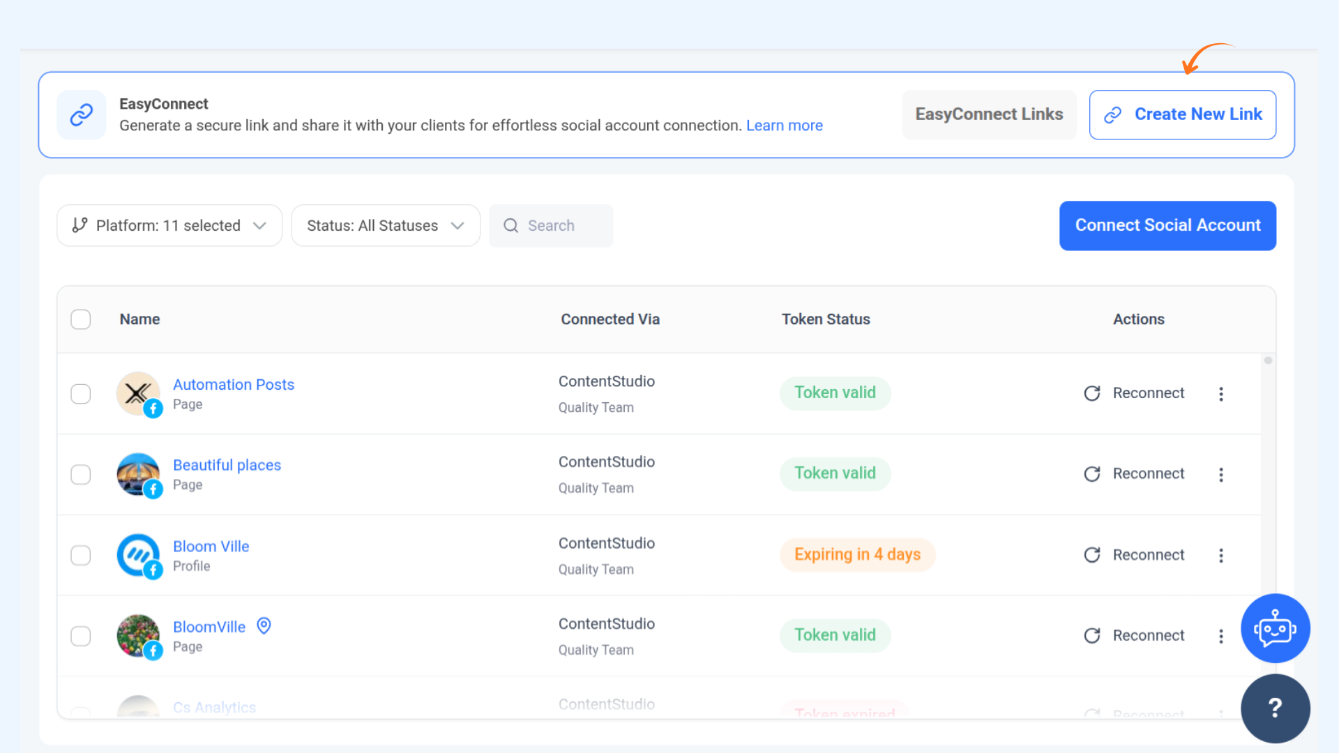 A: Yes, you can use the Easy Connect option in ContentStudio. The same workflow as detailed in this document applies.