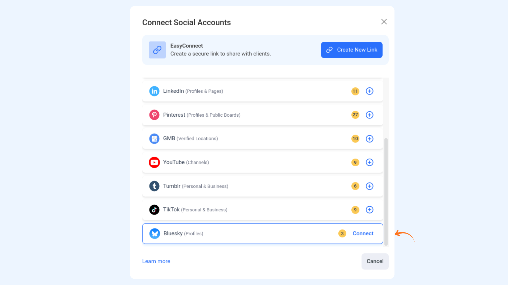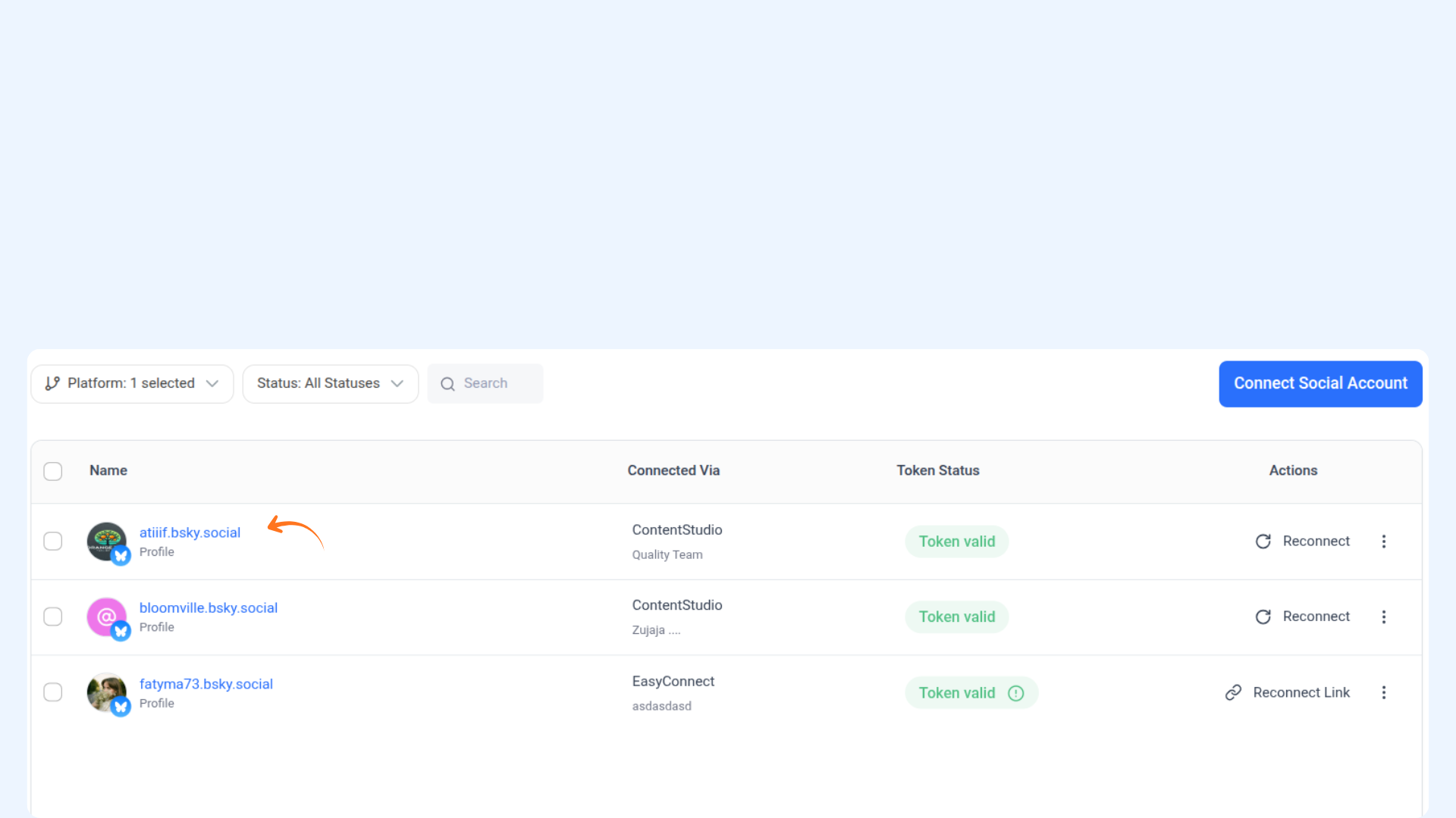 You can also connect the Bluesky account using EasyConnect.