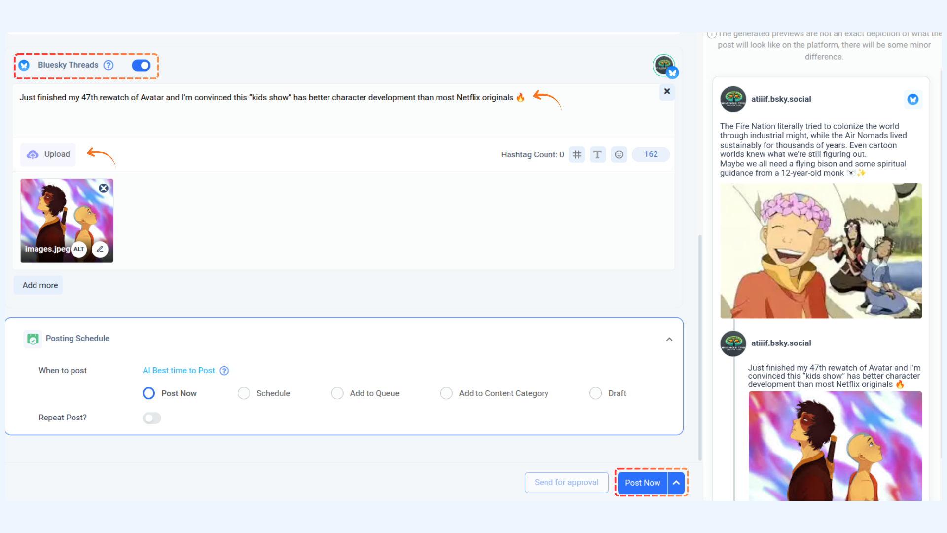 Q4: Can I preview my Bluesky posts before publishing?