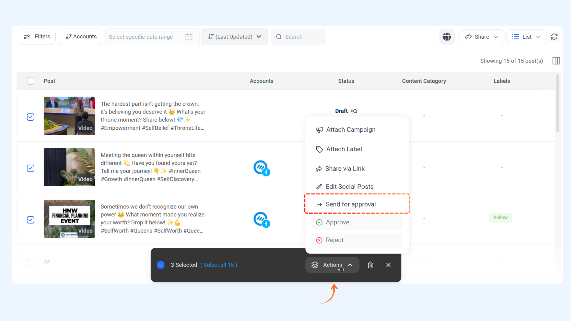 Effortlessly streamline your approval process by sending multiple posts for approval using the Planner module in ContentStudio. This feature simplifies workflows, saves time, and ensures seamless collaboration with approvers. You can now manage approvals in bulk while maintaining full control over the approval conditions.