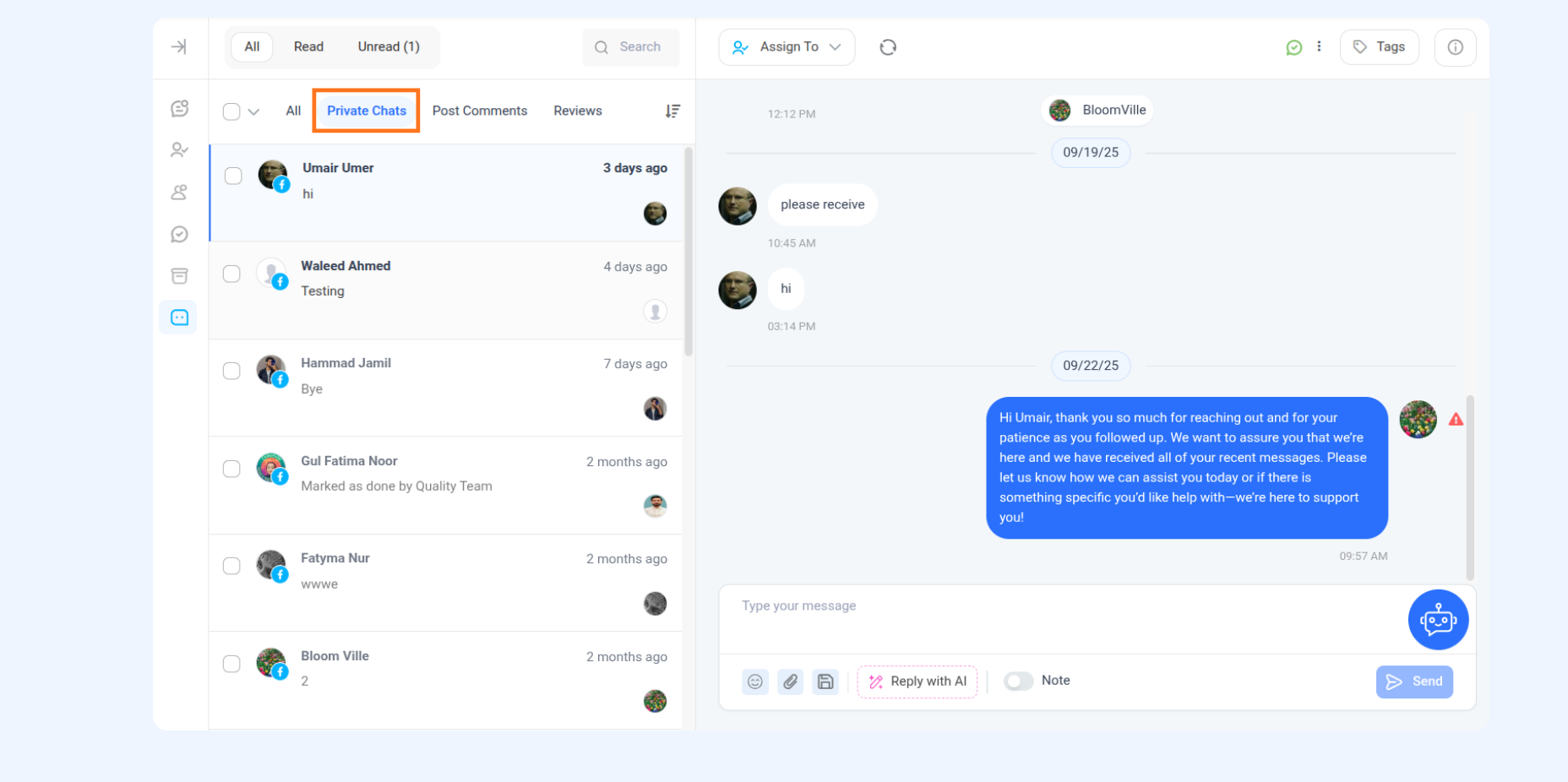 Managing private chats (Facebook & Instagram)