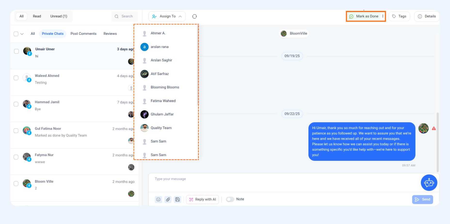 Q4: Can I assign a conversation to a teammate?