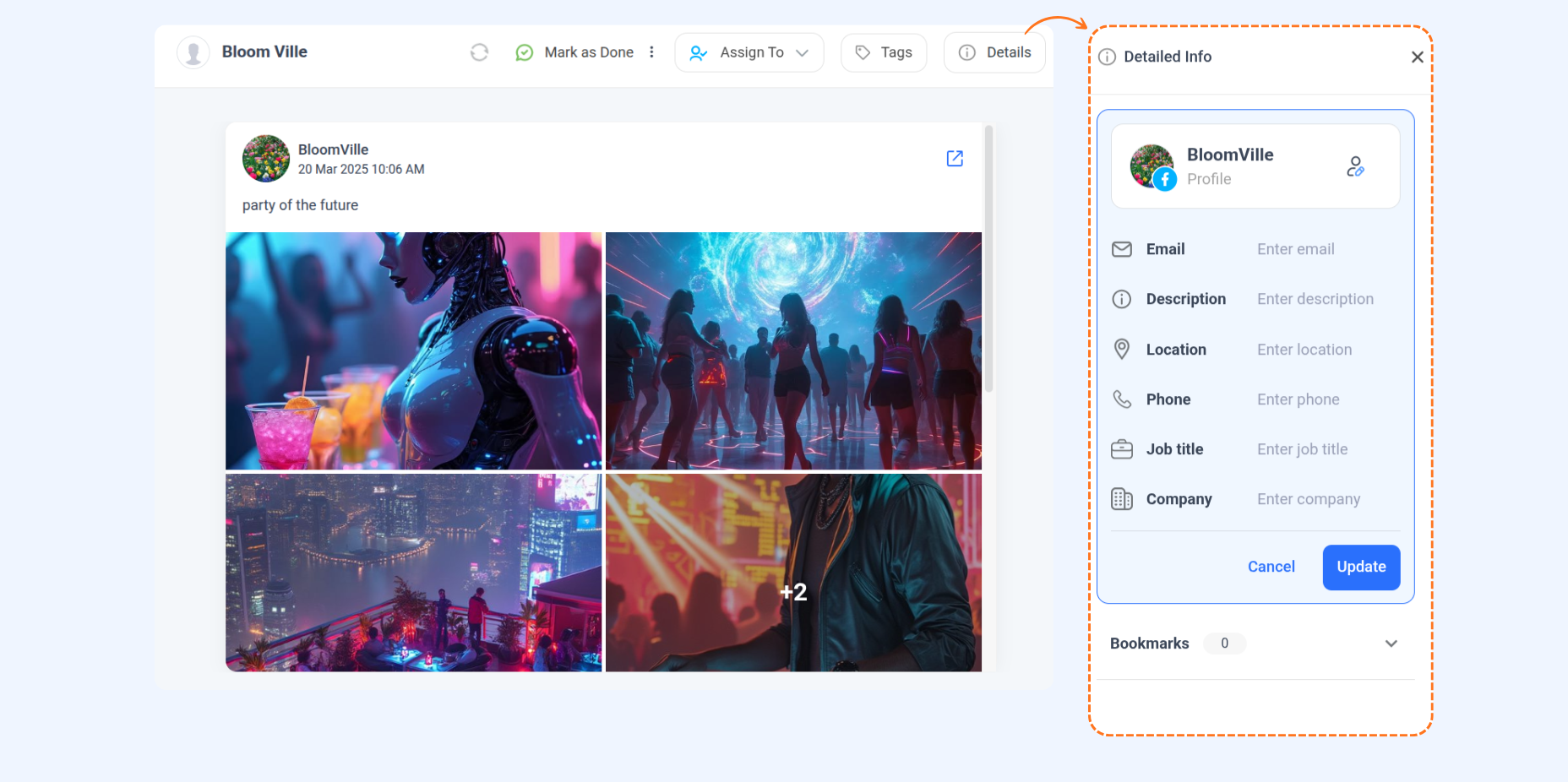 The Details button provides more context about the person you're talking to, helping you better understand and manage the interaction. You can add the following information about the person: