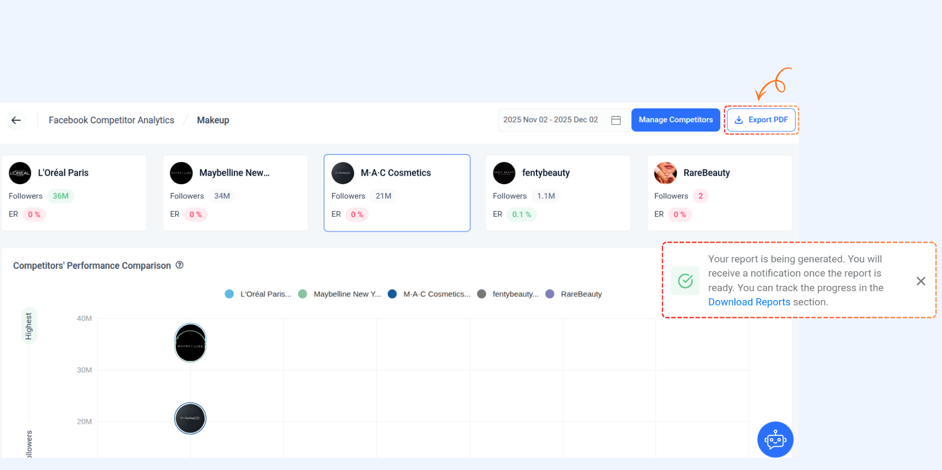 Q1: Can I export reports for both Facebook and Instagram competitors?