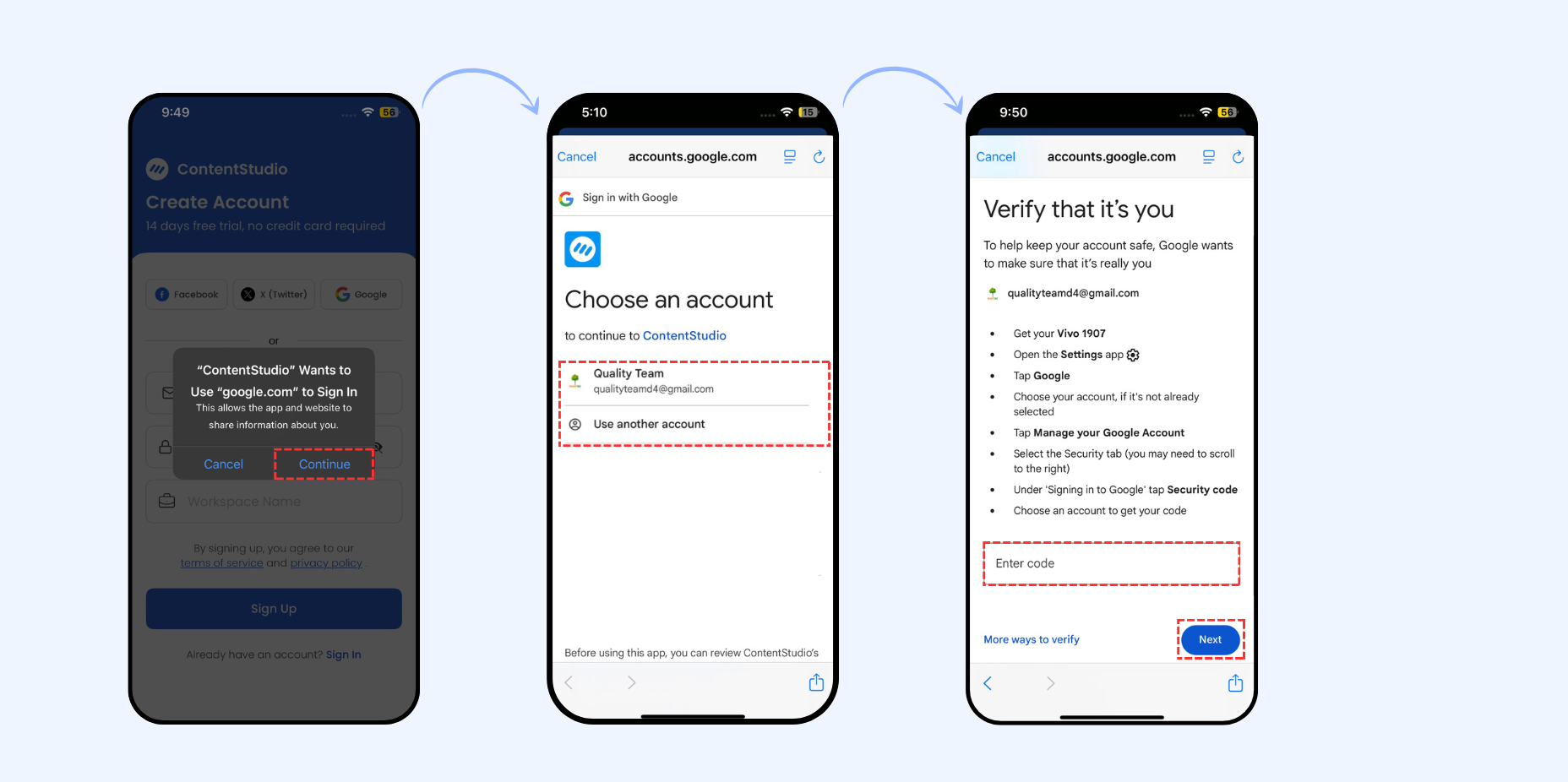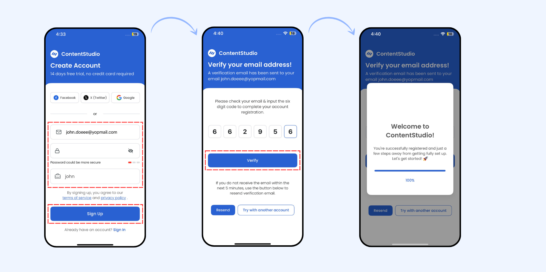 To start using ContentStudio on your iOS device, you’ll first need to create an account. You can sign up using any of the following methods: