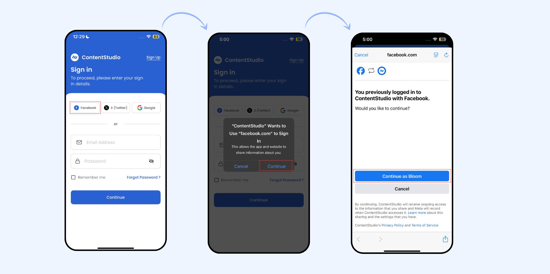 You can sign in to ContentStudio on iOS using your social accounts or email. Choose your preferred option below: