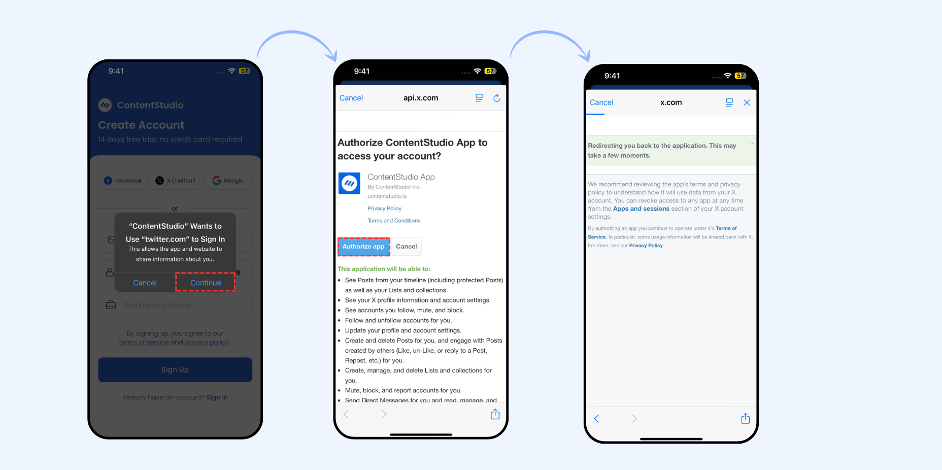 Tap Continue with X and log in with your X (Twitter) account credentials.