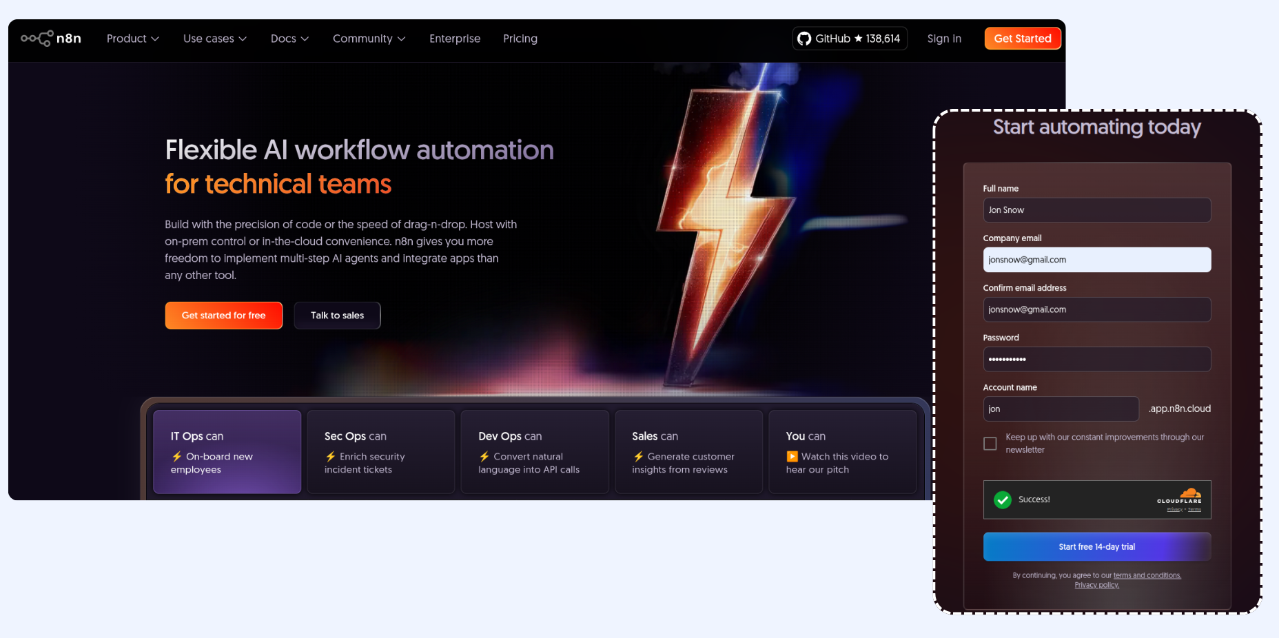 Go to n8n.io, sign up for a new account and complete the setup. If you already have an account, simply log in.