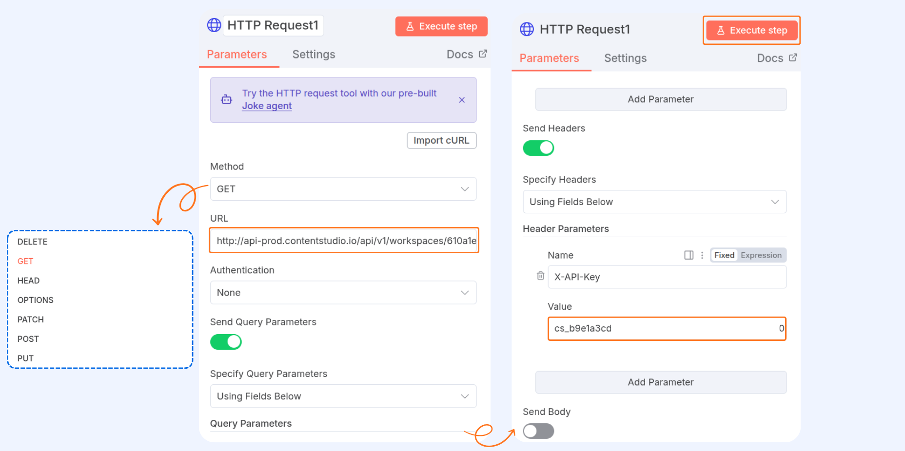 from the ContentStudio API Guide – Workspace section, which will auto-fill the fields, or set them manually (enter the endpoint URL and fill in the required fields yourself).