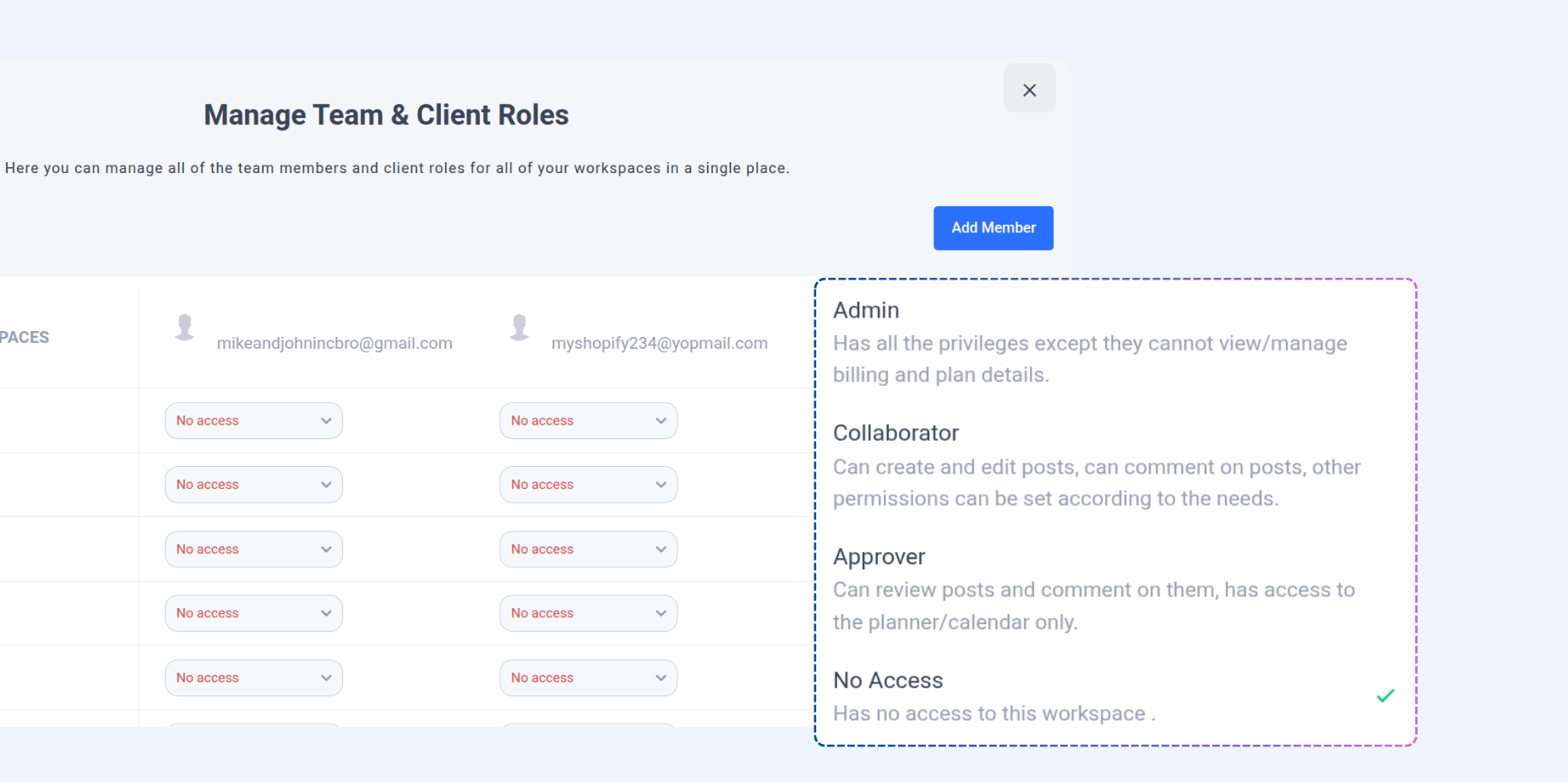 Each ContentStudio workspace can have multiple Administrators. Every Admin has full access to settings, billing, and social account management.