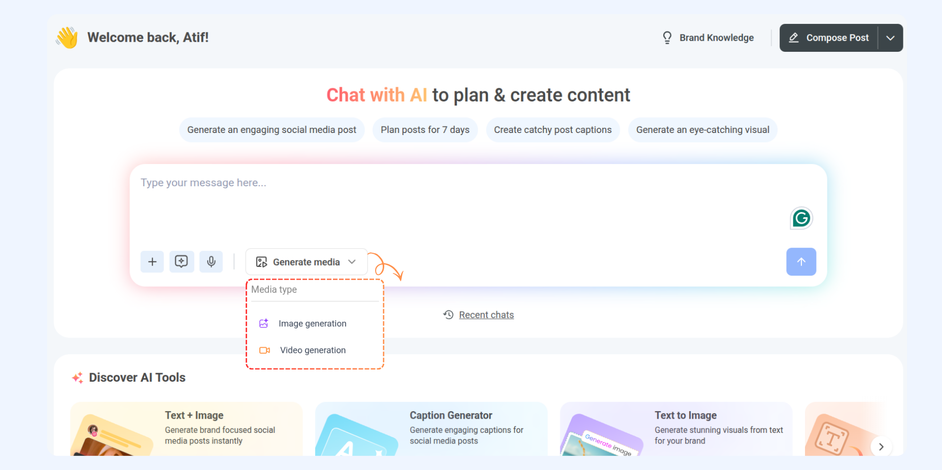 All AI-generated videos are automatically saved in the Media Library, ready to be used in your posts or downloaded anytime.
