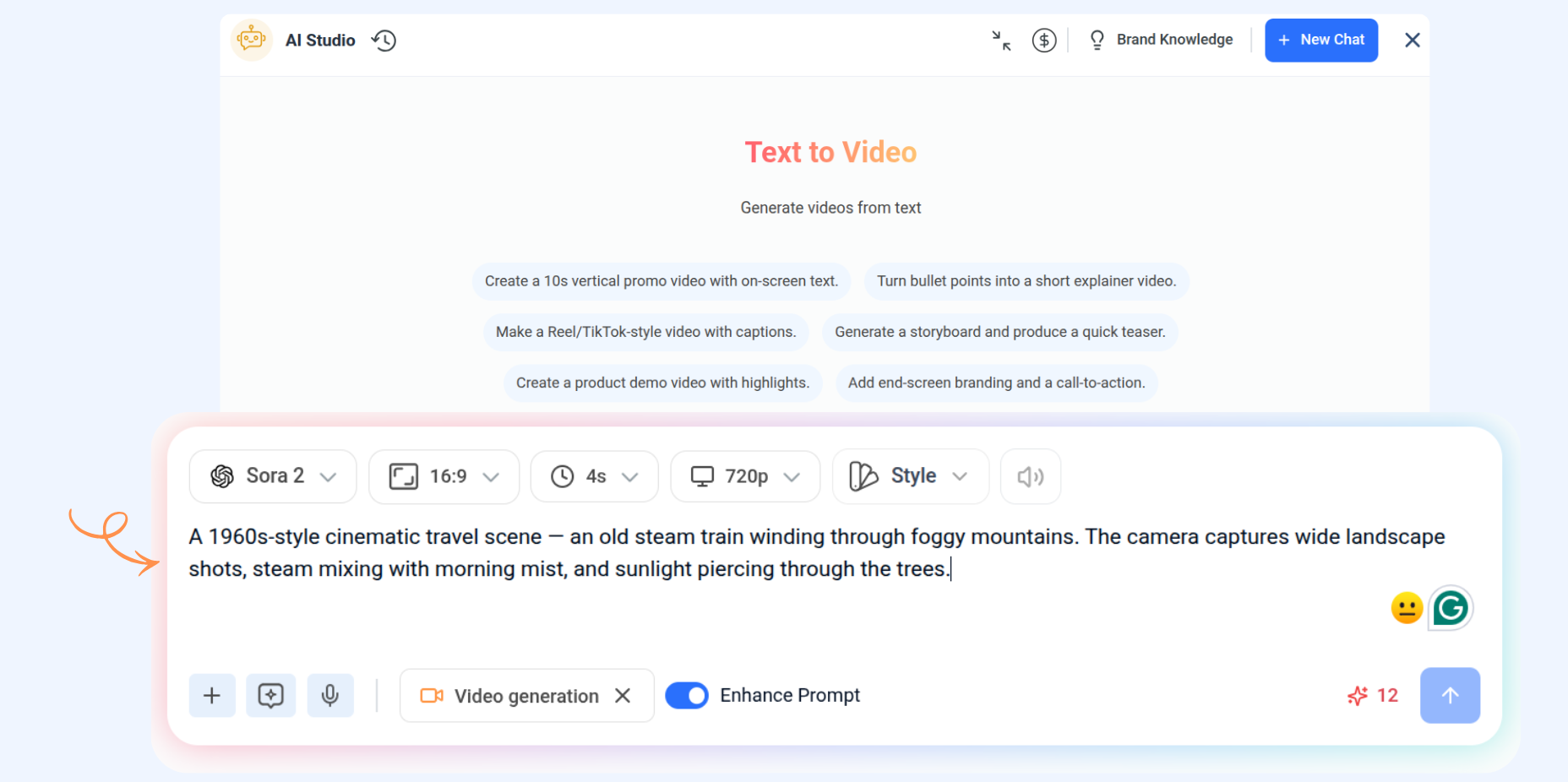 Alternatively, you can also click on the Text to Video card displayed directly on the Home page to start creating your video instantly.