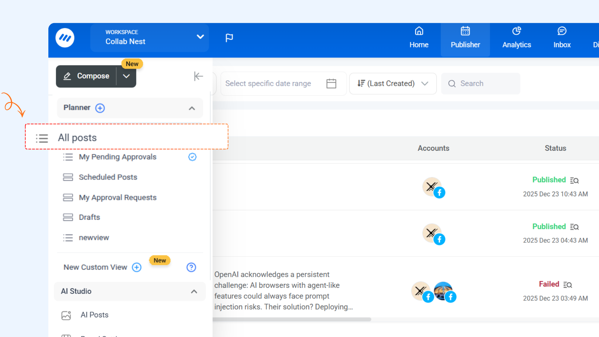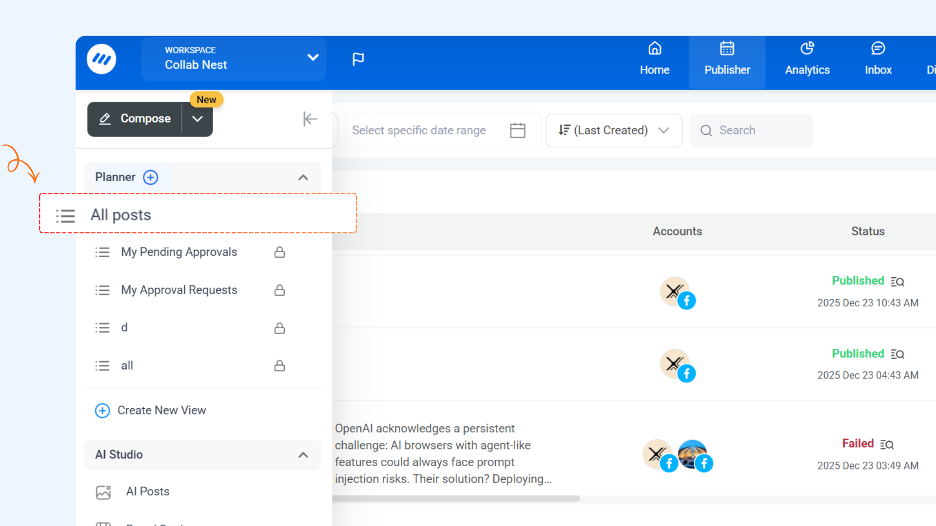 The All Posts view is the default view in the Planner. It shows all content in one place without applying any filters, making it easy to see everything at a glance.