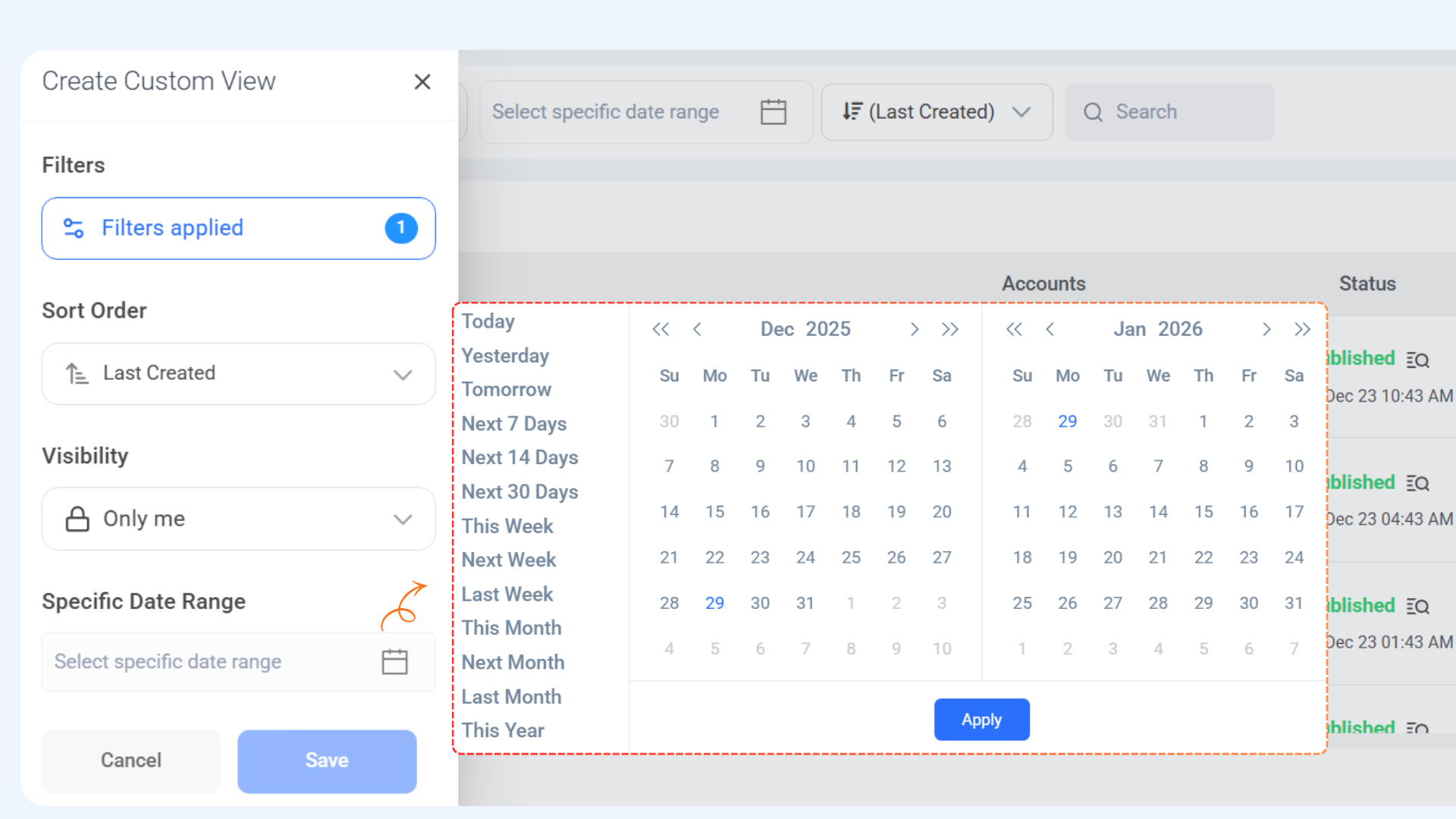 Custom Views in Planner allow you to save specific filters, layouts, and date ranges so you can quickly access the content that matters most to you. Instead of repeatedly applying the same filters, you can create personalized views tailored to your workflow.