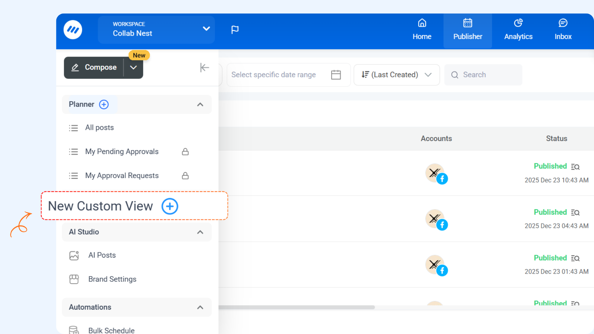 Custom Views allow you to create a personalized Planner setup by pre-selecting filters, view types, and date ranges.