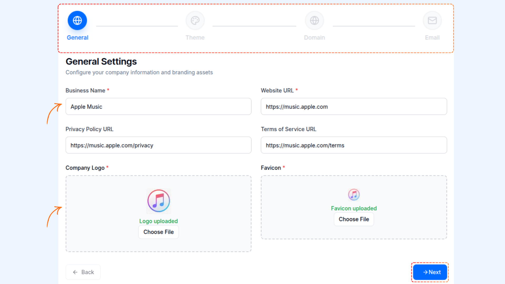 General Settings define the core business and branding information visible to your customers. This section includes:
