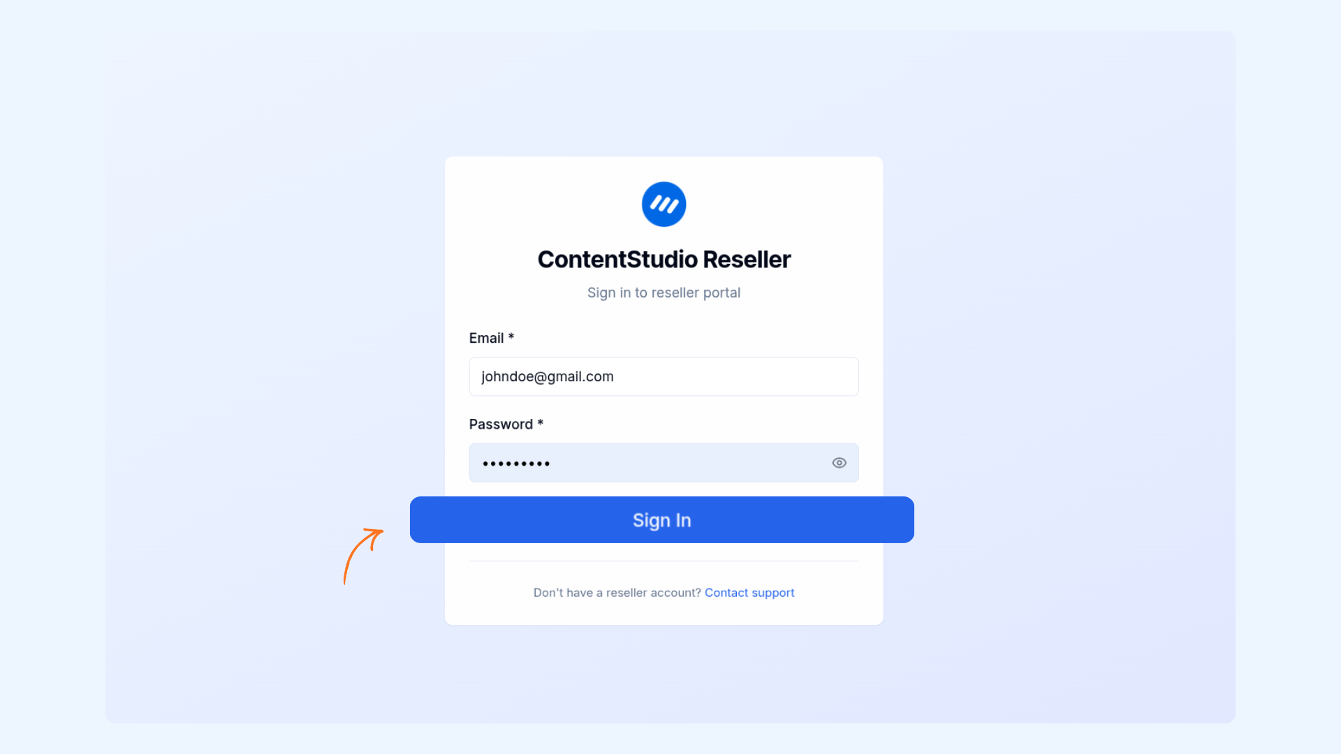 Customers can only access the platform through an invitation sent by the reseller. There is no self-sign-up flow available.