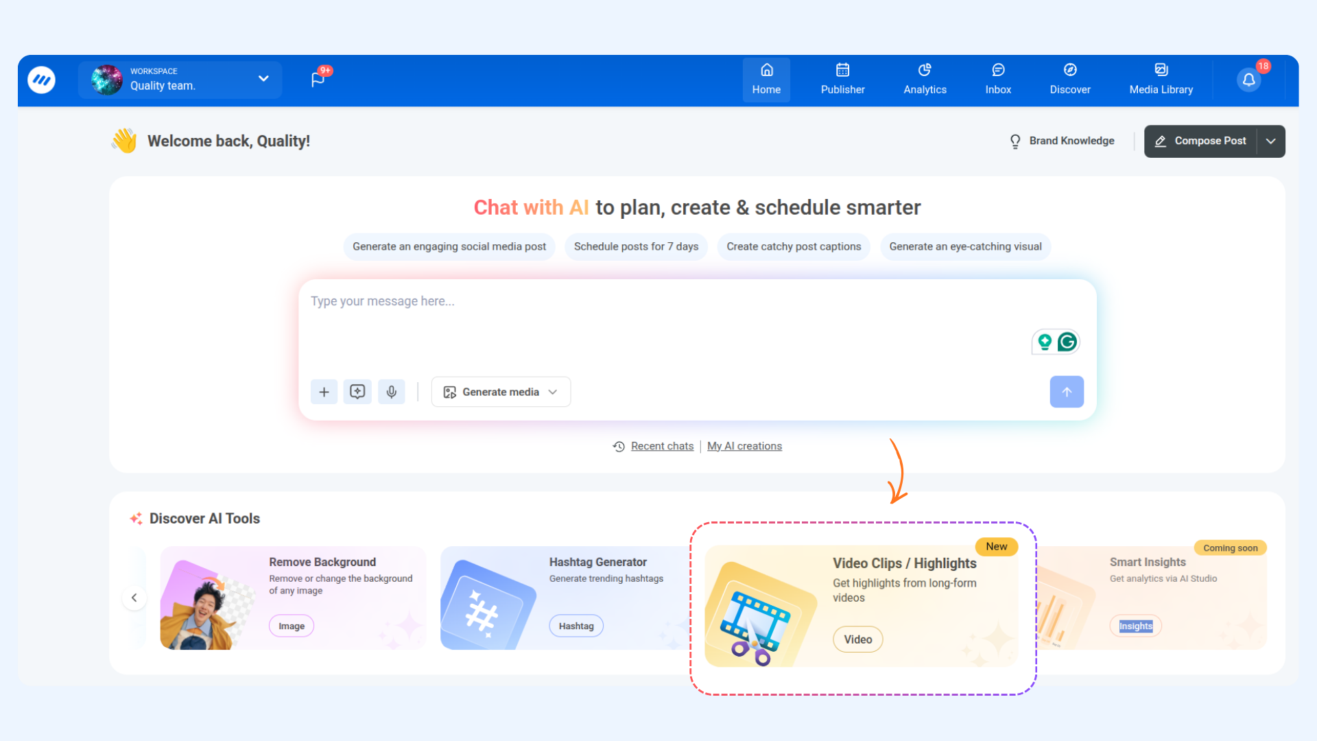 ContentStudio now makes it easier than ever to turn long-form videos into short, engaging clips using AI. With the new Video Clips & Highlights feature, you can quickly extract the most impactful moments from podcasts, interviews, and other long videos—ready to be shared as Reels or Shorts.