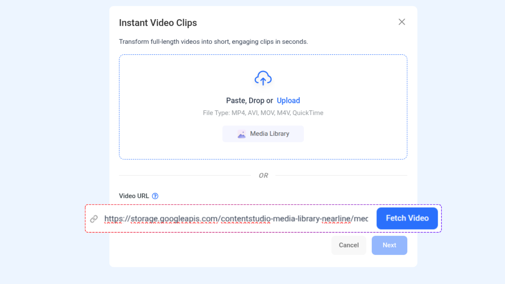 - Paste a video URL and click Fetch Video