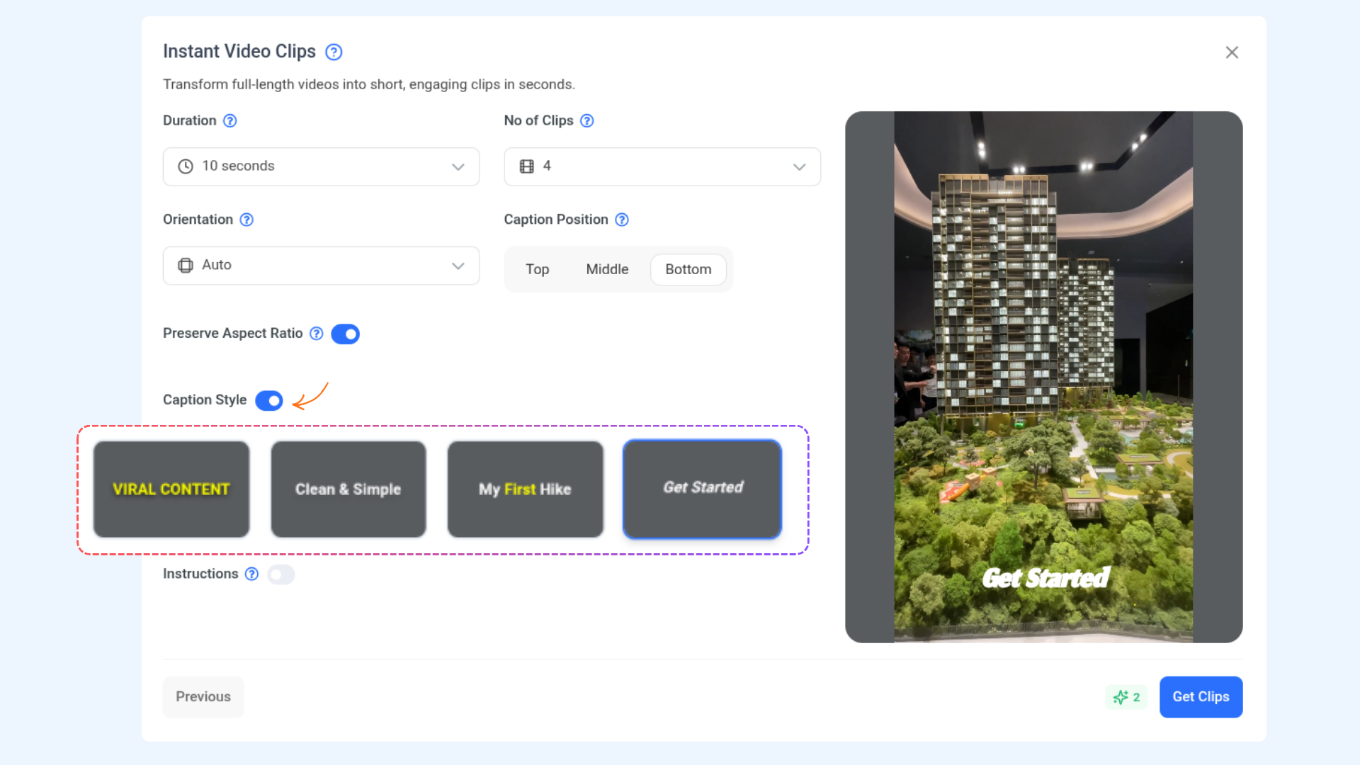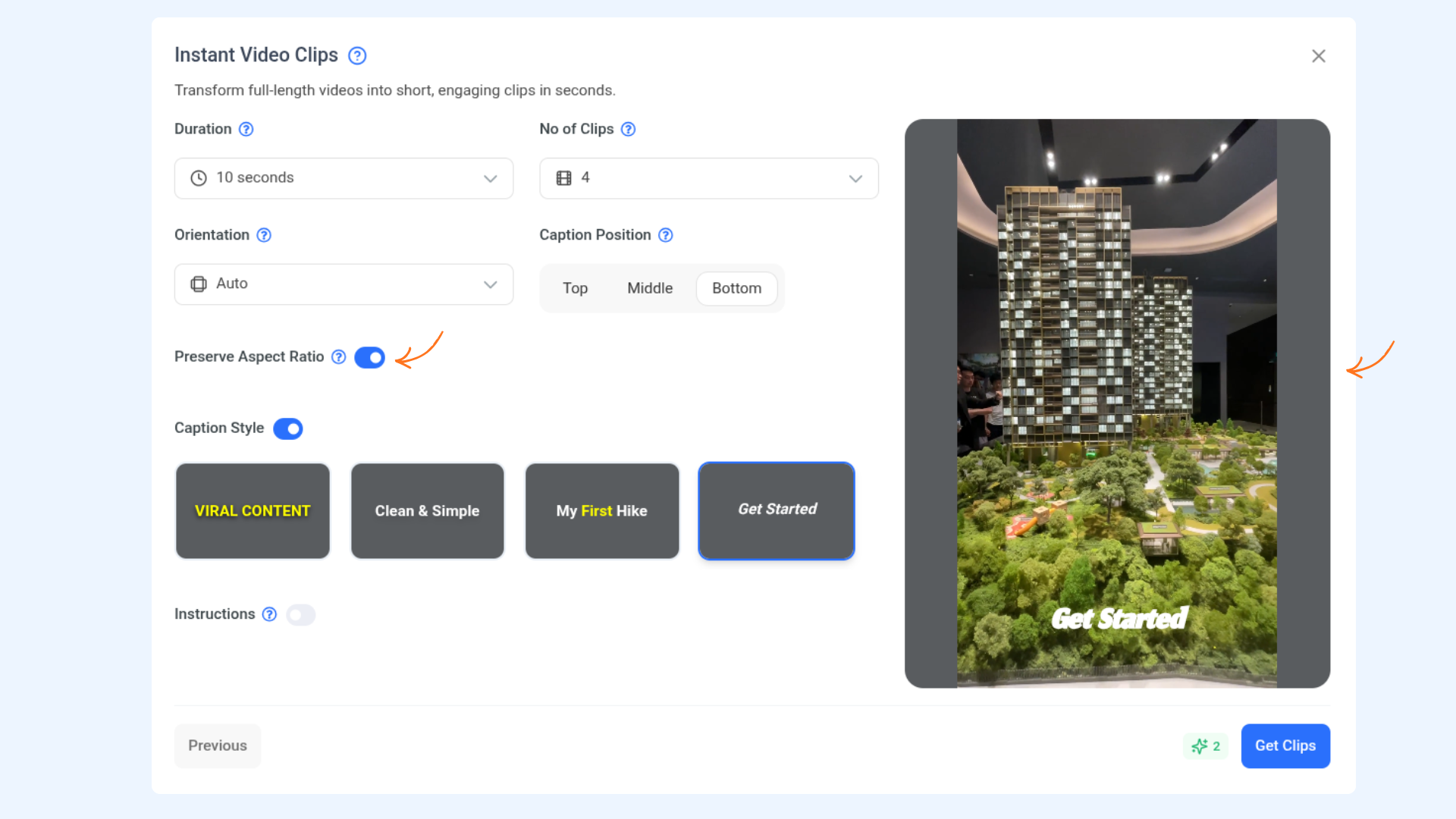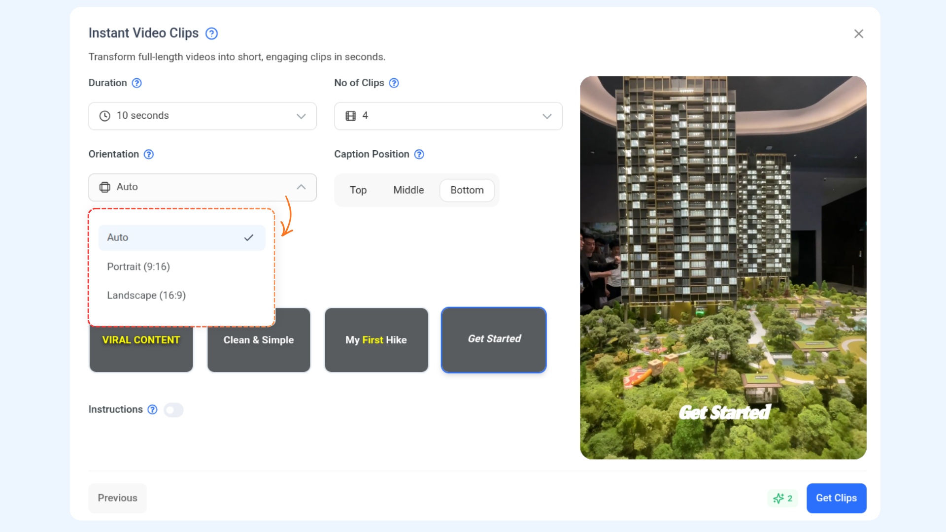 Customize how AI generates your clips using the following options: