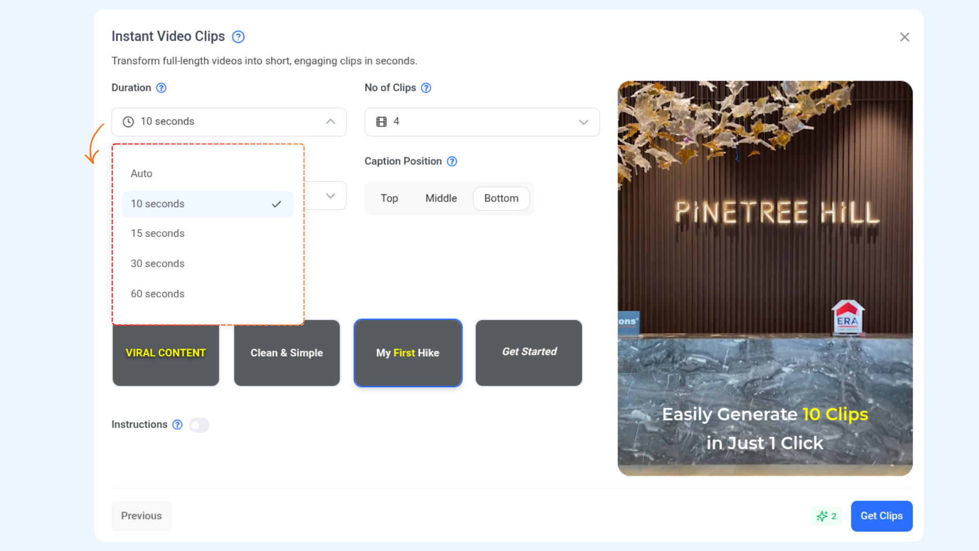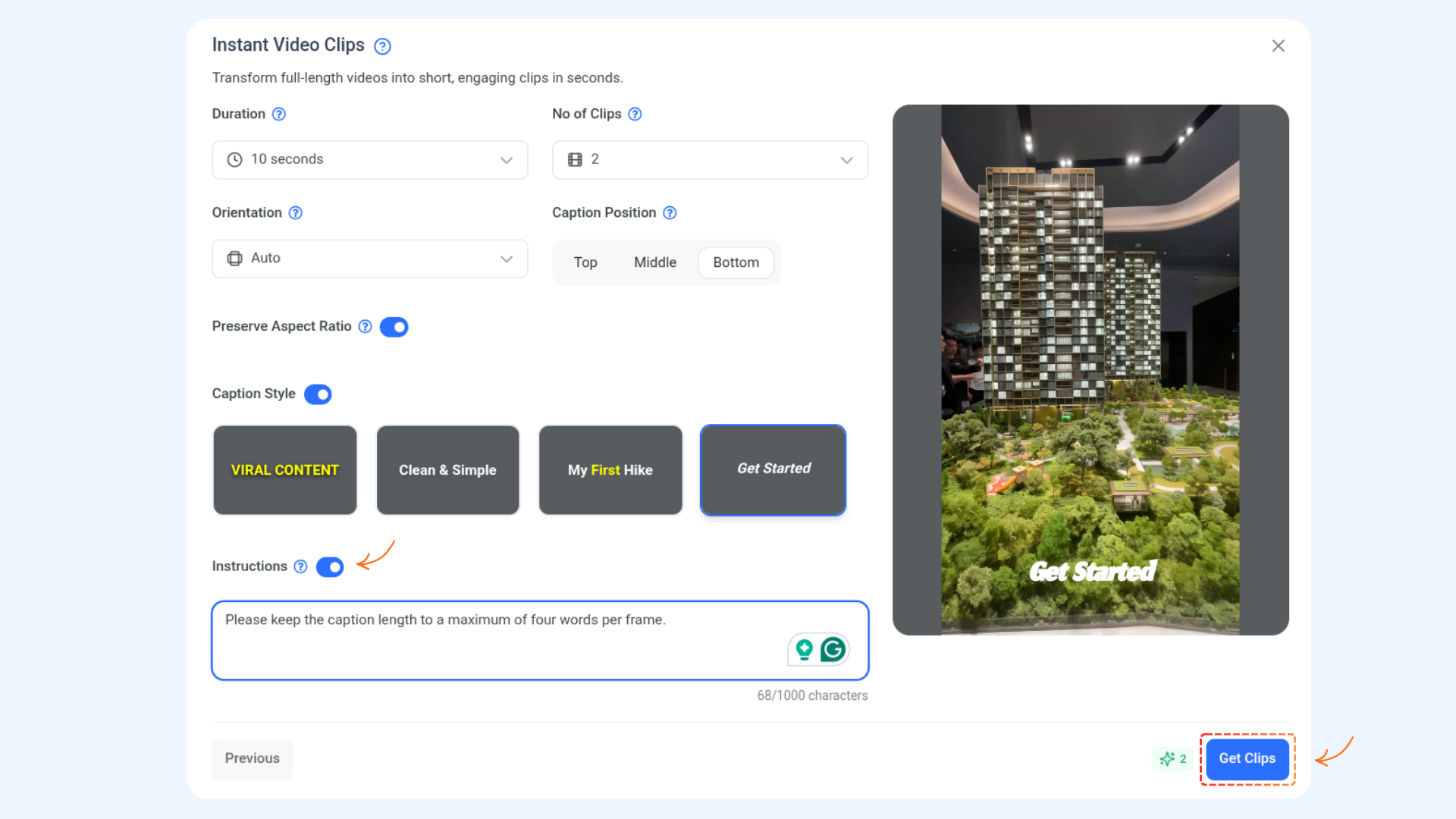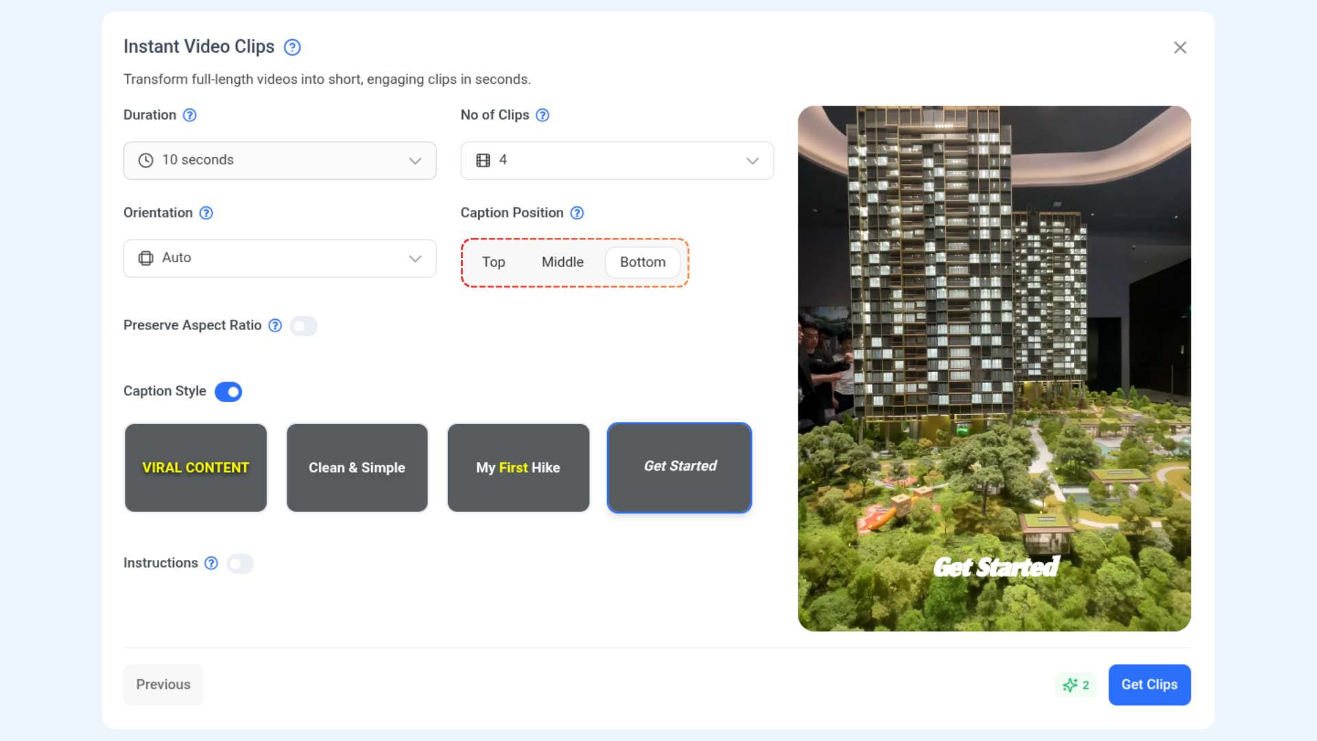 Customize how AI generates your clips using the following options: