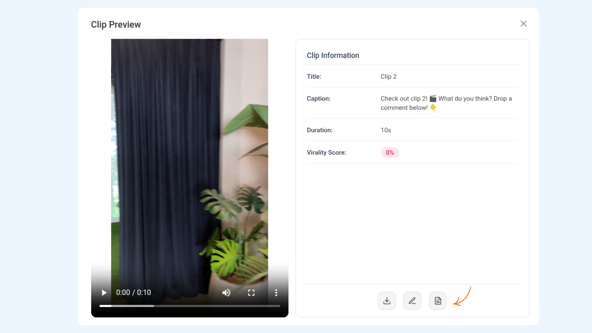 Each generated clip includes: