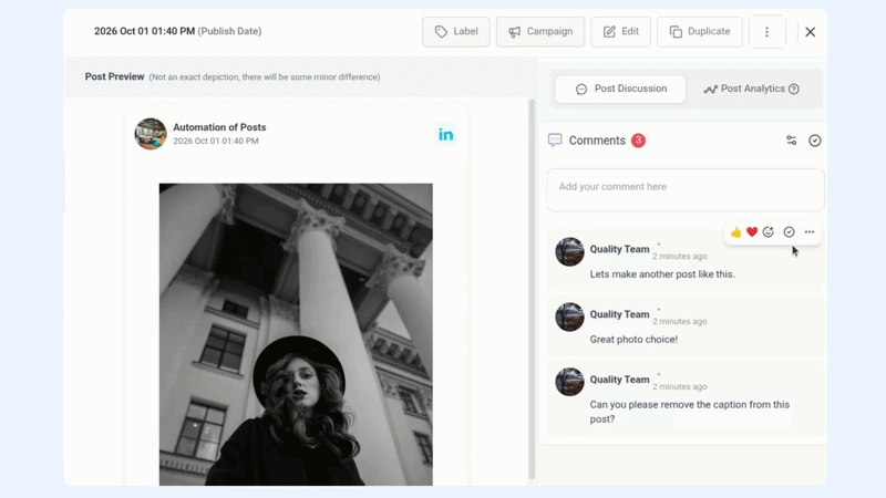 A: Yes! The reaction feature is also available in the Composer comment section, so you can react directly while drafting or previewing posts.