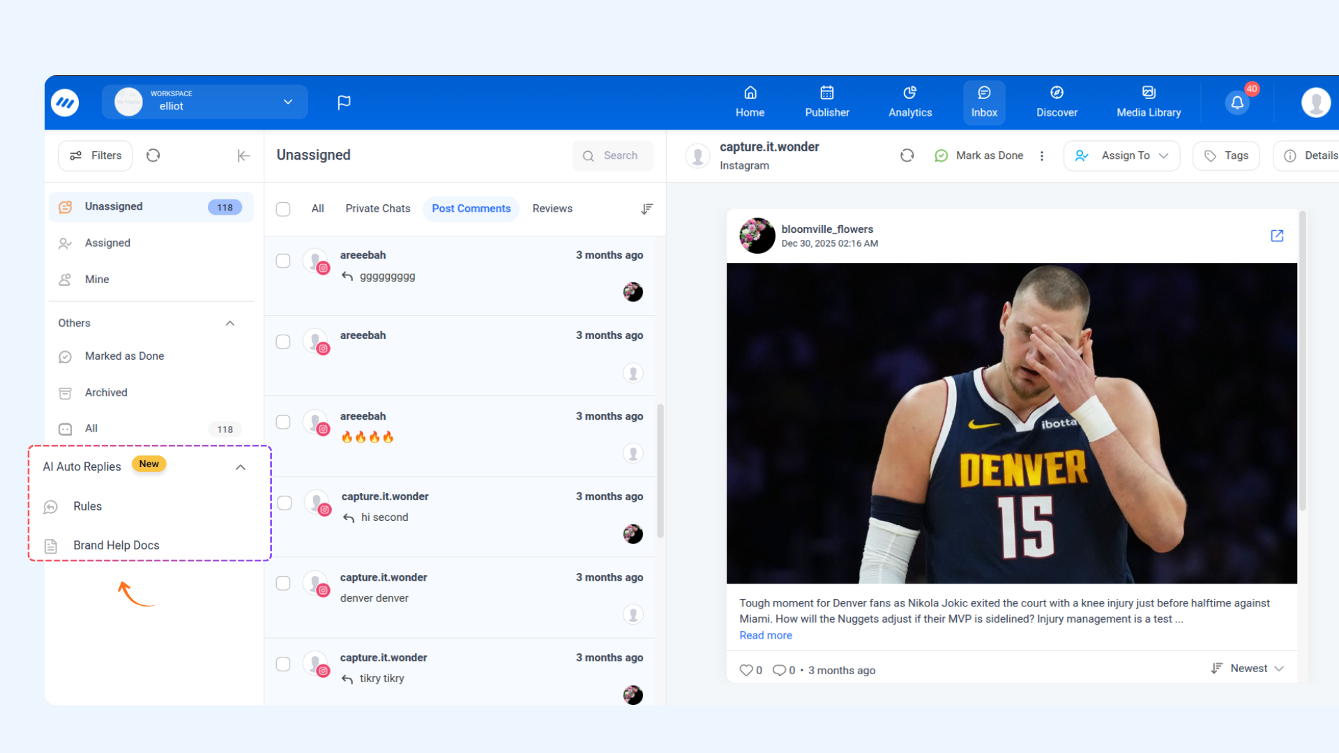 - Post Comments — applies to comments on Facebook, Instagram, YouTube, and LinkedIn posts.