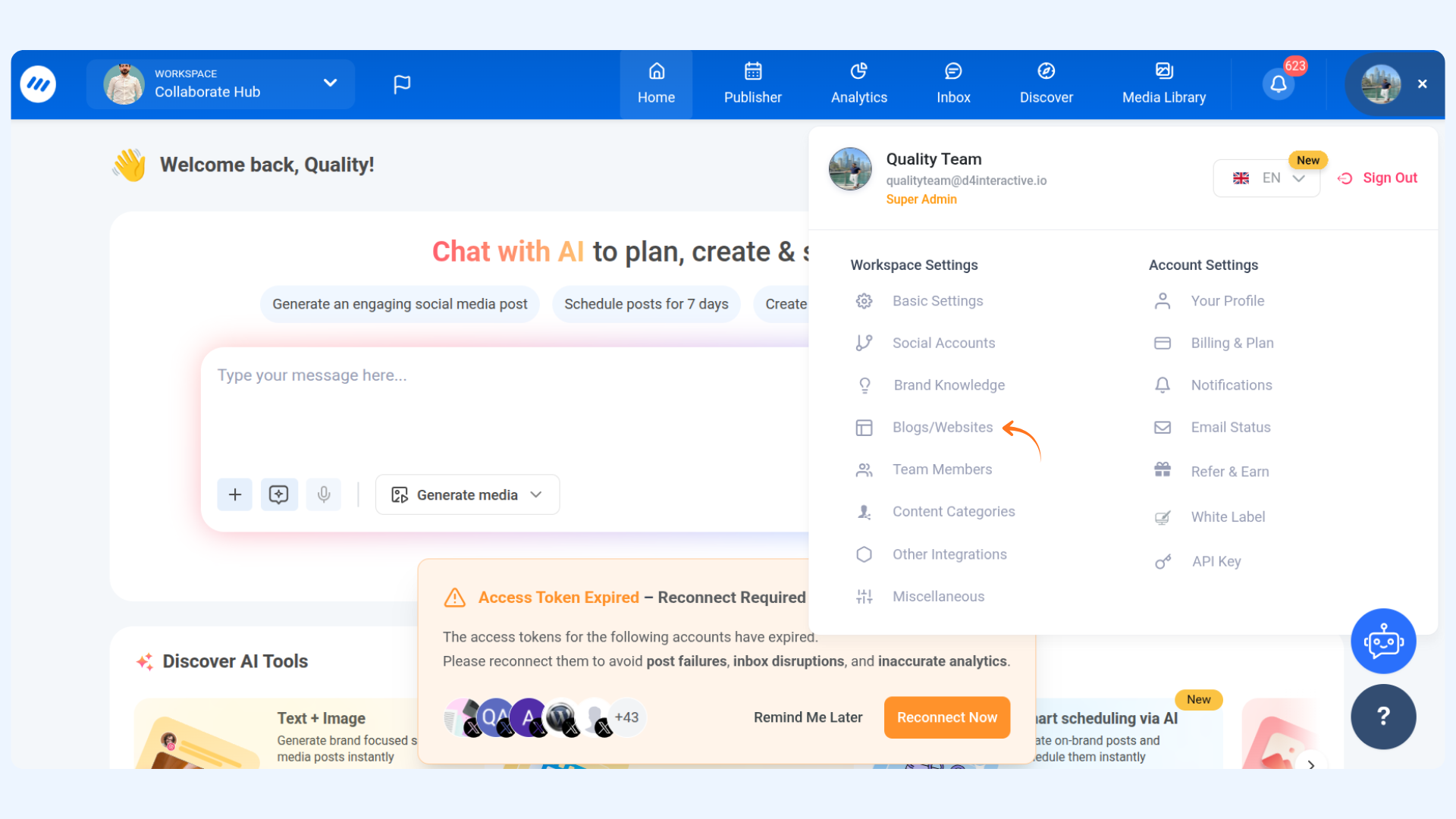 Connecting your Medium blog with ContentStudio allows you to publish and manage your Medium articles directly from the platform. Follow the steps below to complete the integration.