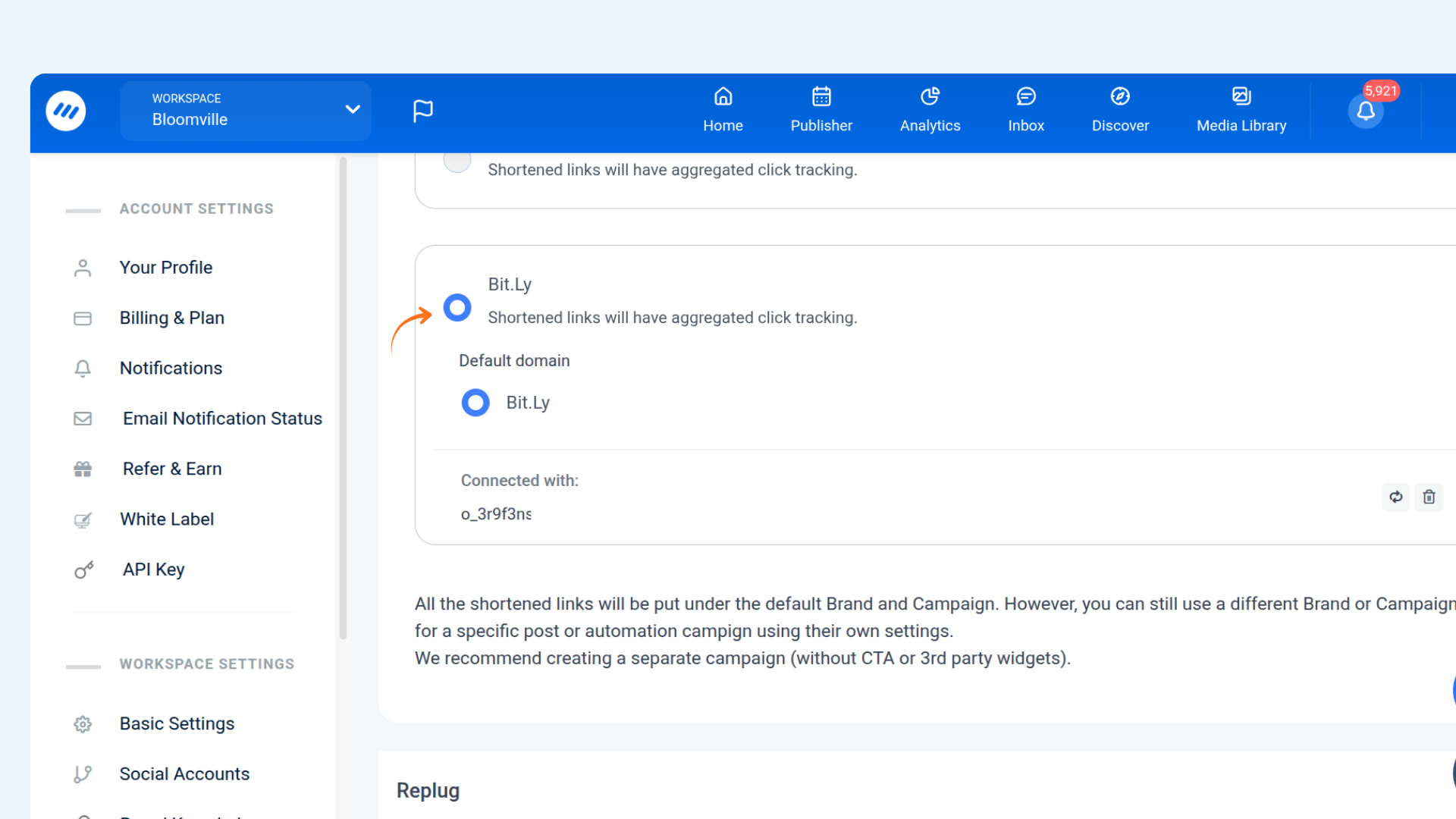 Below is a step by step process to connect your Bitl.ly account with ContentStudio for link shortening purposes.