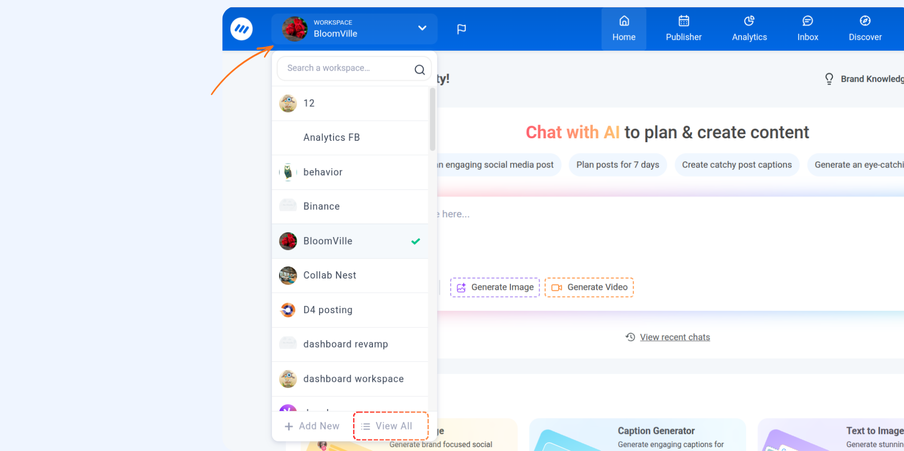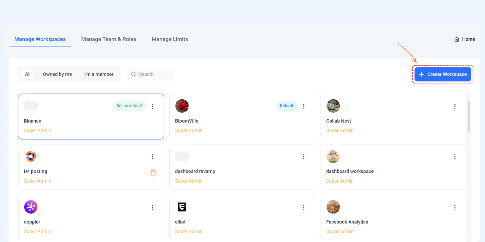 A workspace is where you keep all campaigns, content, and scheduled posts related to a brand in one single place. You can also communicate with and collaborate with all the relevant stakeholders.