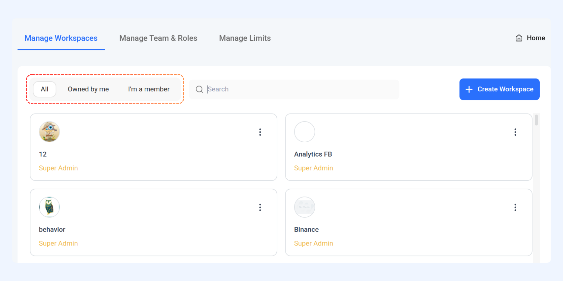 - I’m a member of – lists workspaces where you’ve been added as a member.