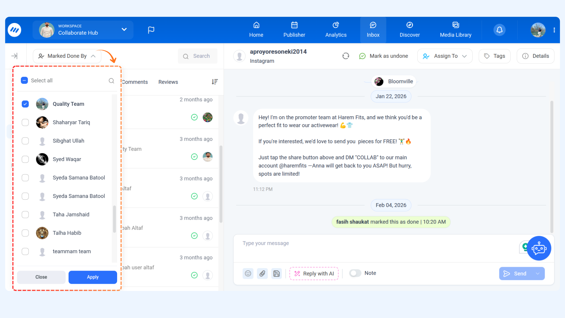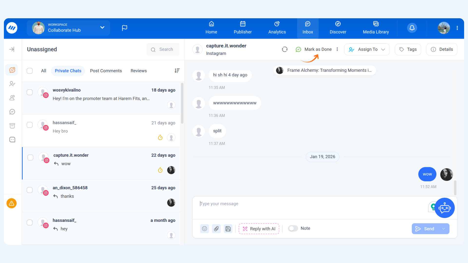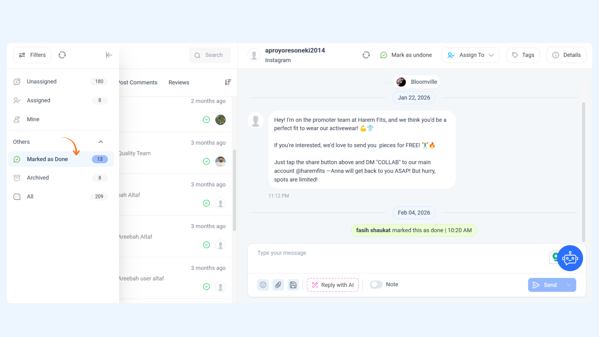 Yes, you can mark any message, comment, or post as “Mark as done” even if you choose not to respond—useful for spam or irrelevant messages.
