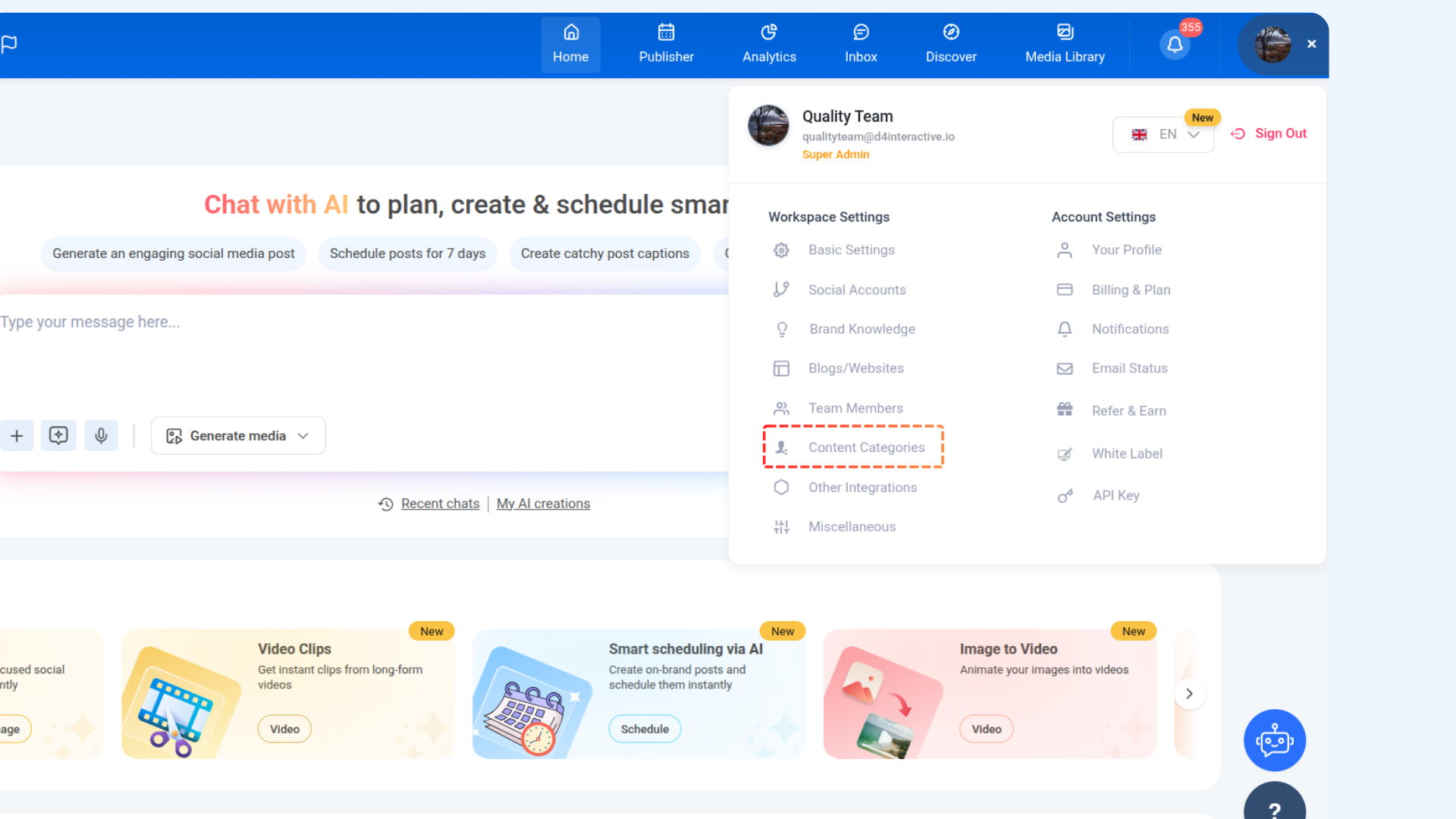 Content categories help you automate your posting schedule by allowing you to define the exact time for publishing content from a specific category. This eliminates the need to set the posting time for each post manually.