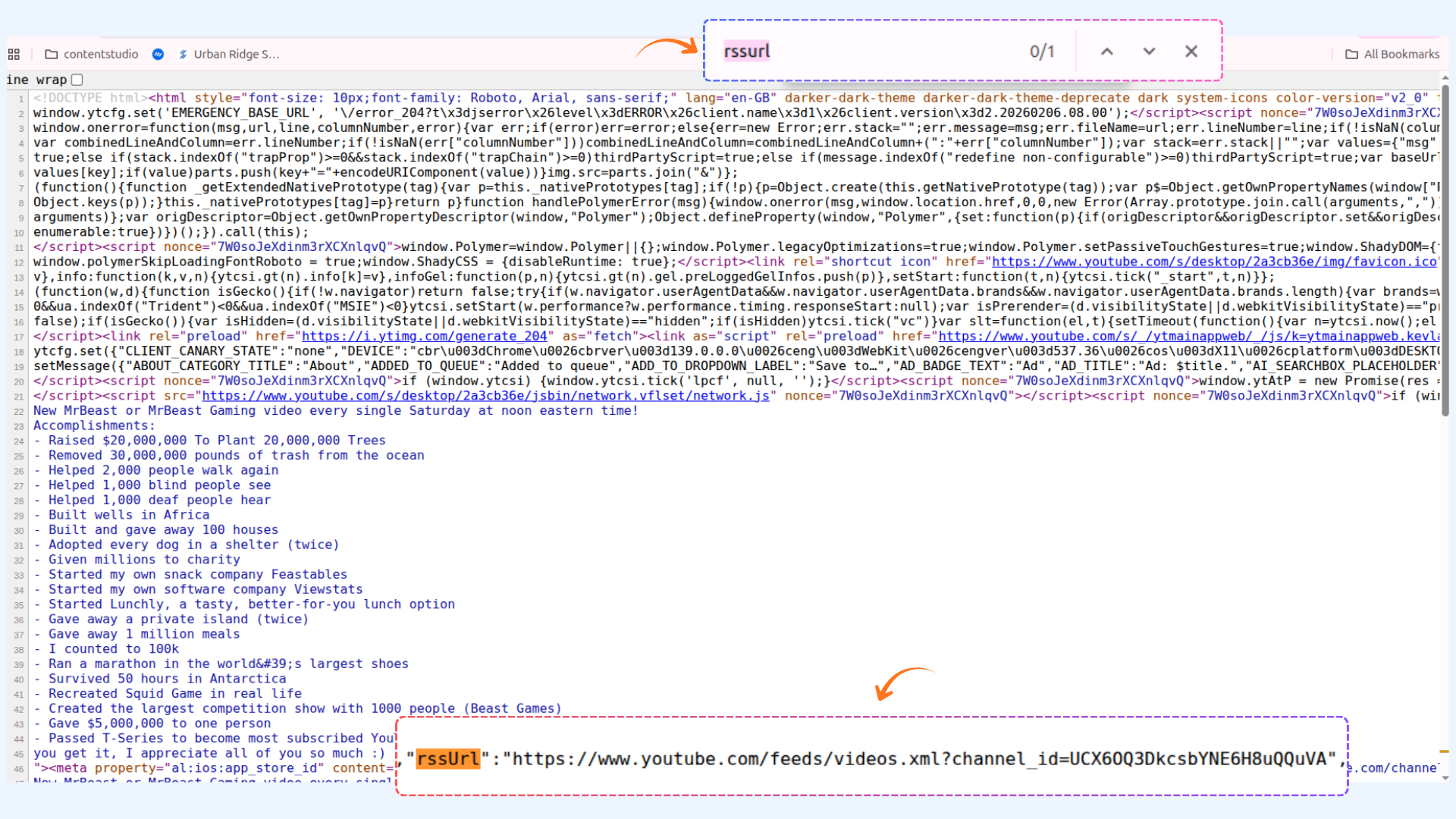 Press Ctrl + F and type rssurl in the search bar.