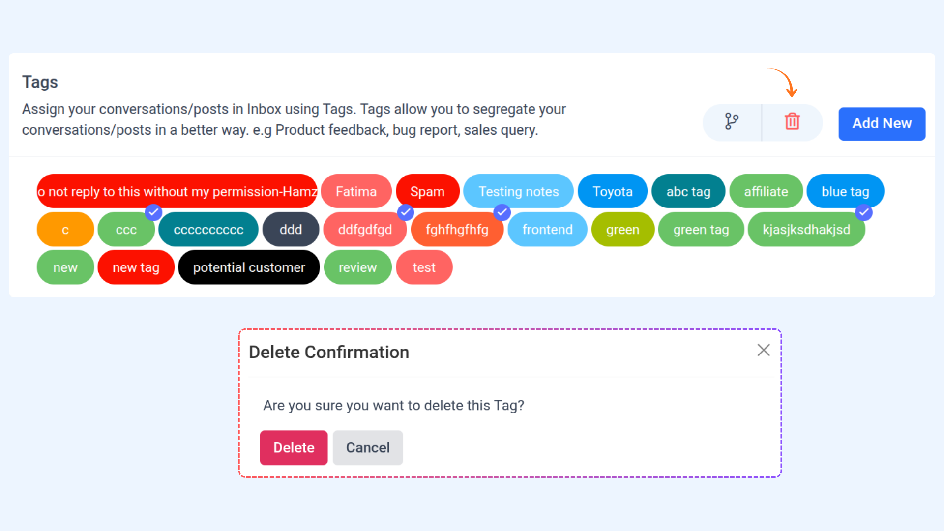 How can I delete tags in social inbox?
