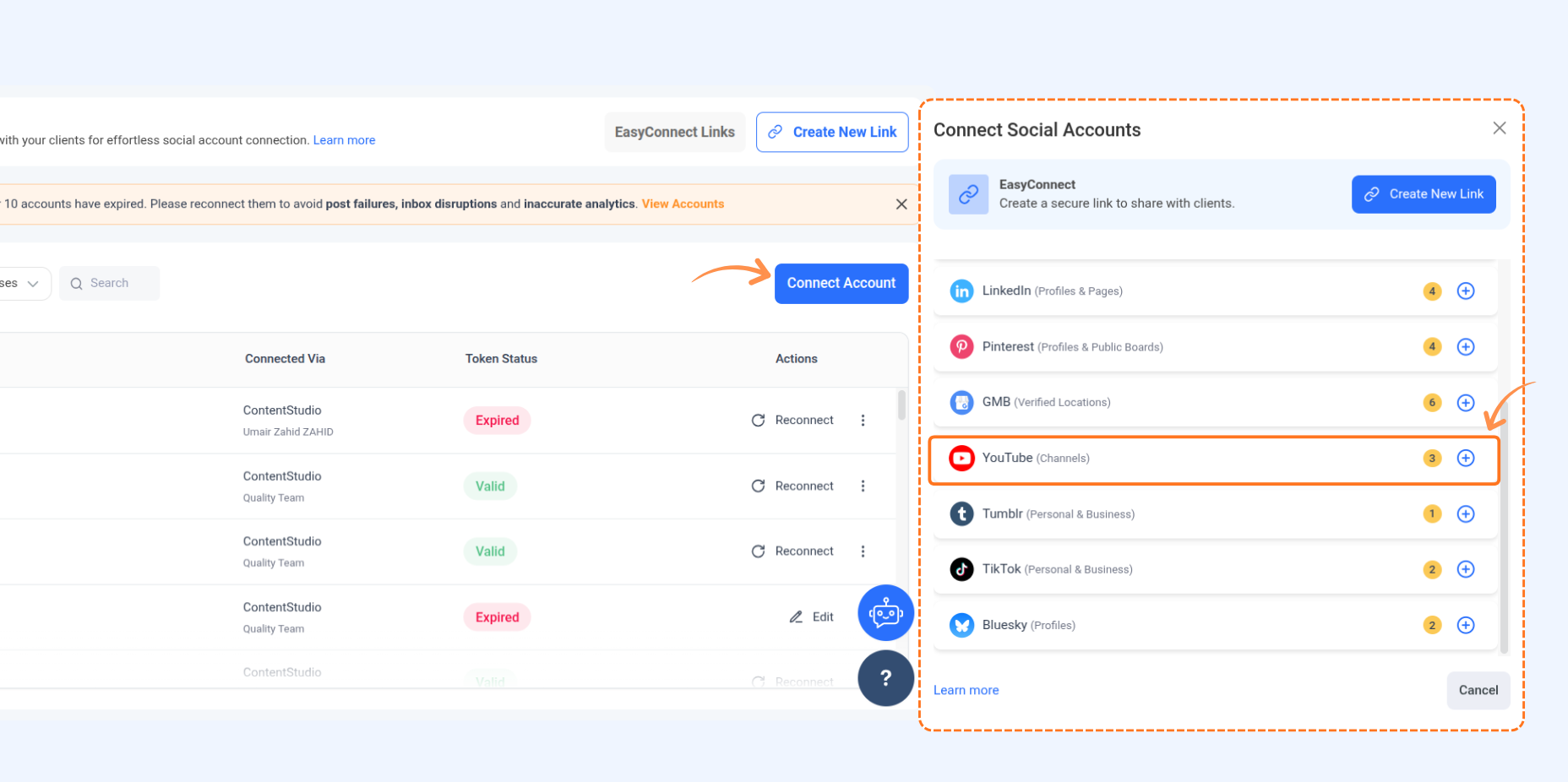 1. Can I connect multiple YouTube channels to ContentStudio?