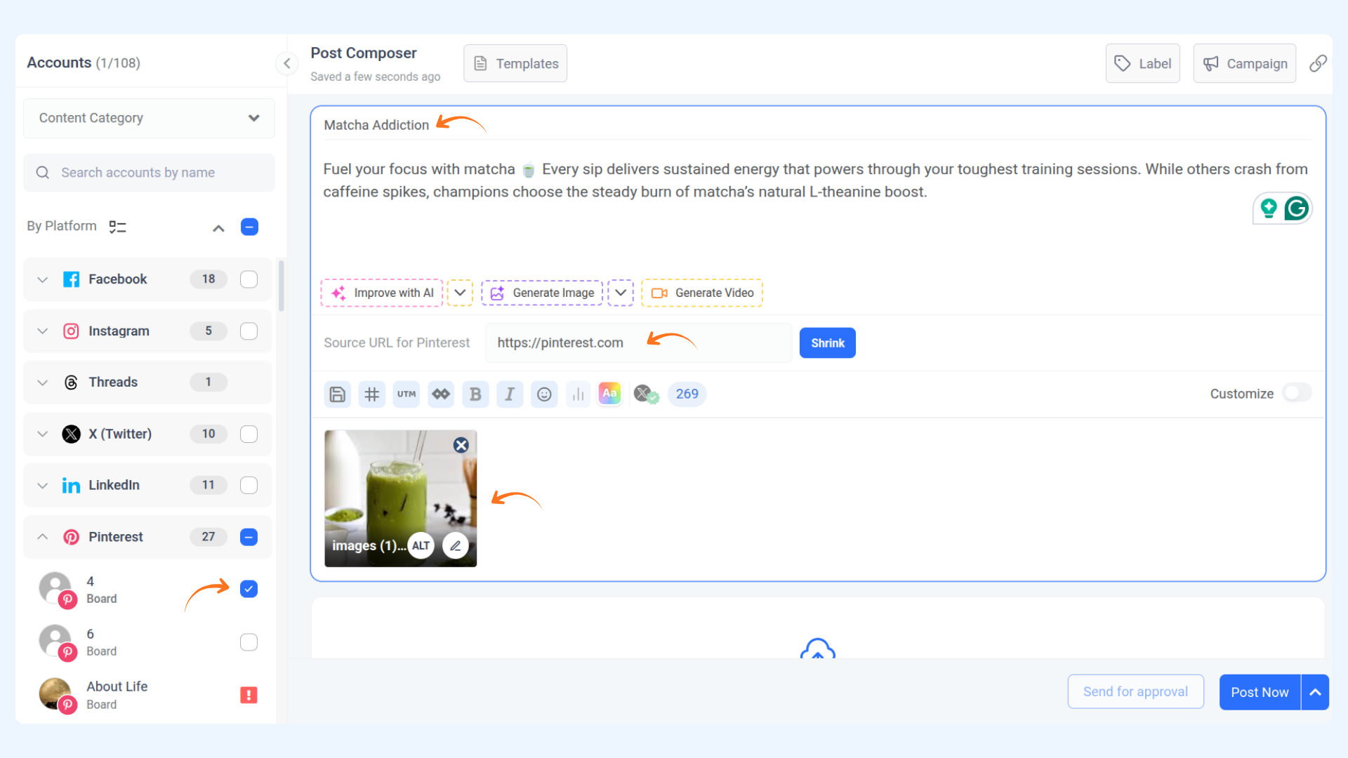 A: Yes, you can schedule your Pinterest posts later or publish them immediately by clicking on "Post now."