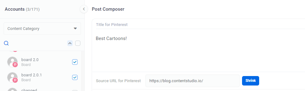 2- In the composer, select the Pinterest board(s) you wish to post to