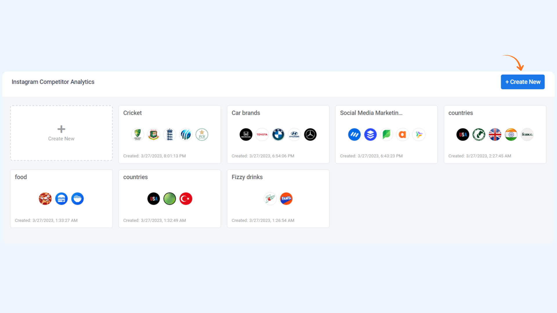 This opens the Competitor Analytics dashboard. Click Create New to create a new competitor list.