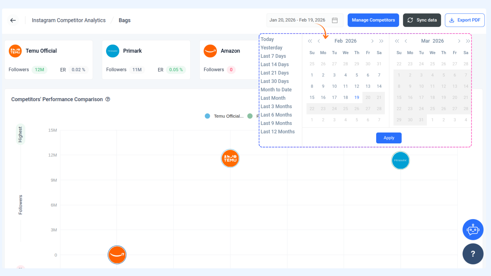Instagram Competitor Analytics helps you monitor and evaluate how other brands or creators in your niche are performing. By tracking competitor engagement, posting behavior, and content performance, you can identify trends, discover opportunities, and refine your own Instagram strategy.