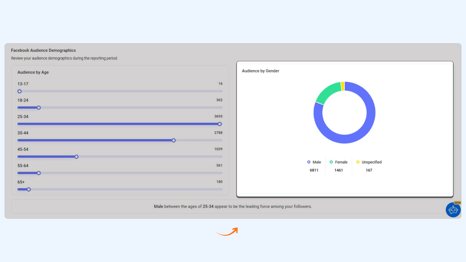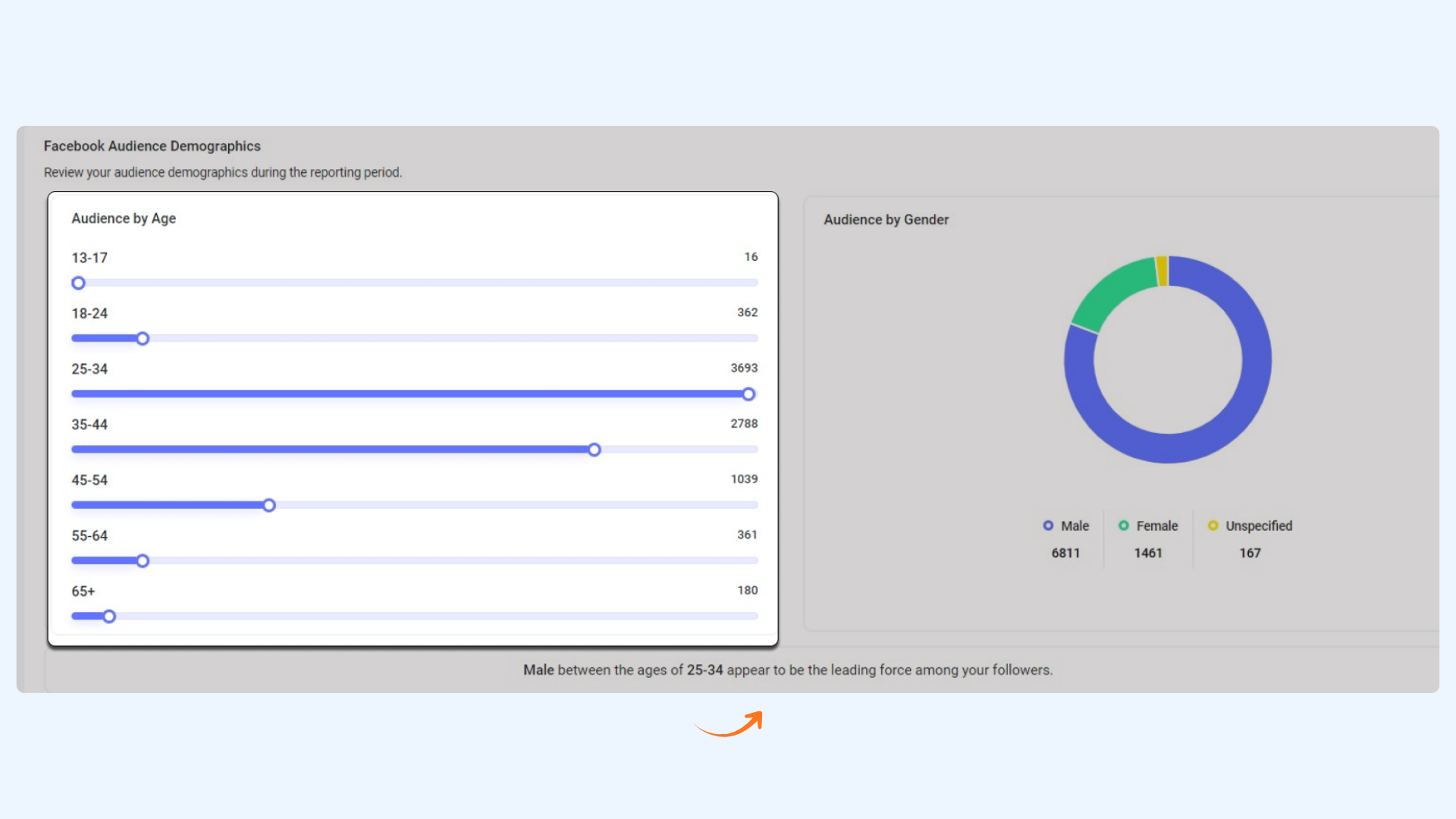 • Displays the breakdown of fans by age group for the selected period.